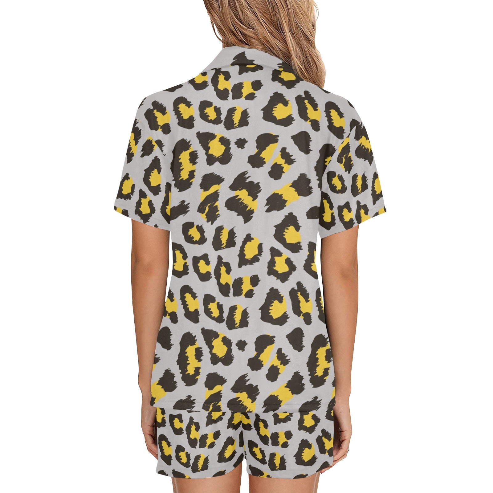 Gray Leopard print pattern Women's V-Neck Short Pajama Set