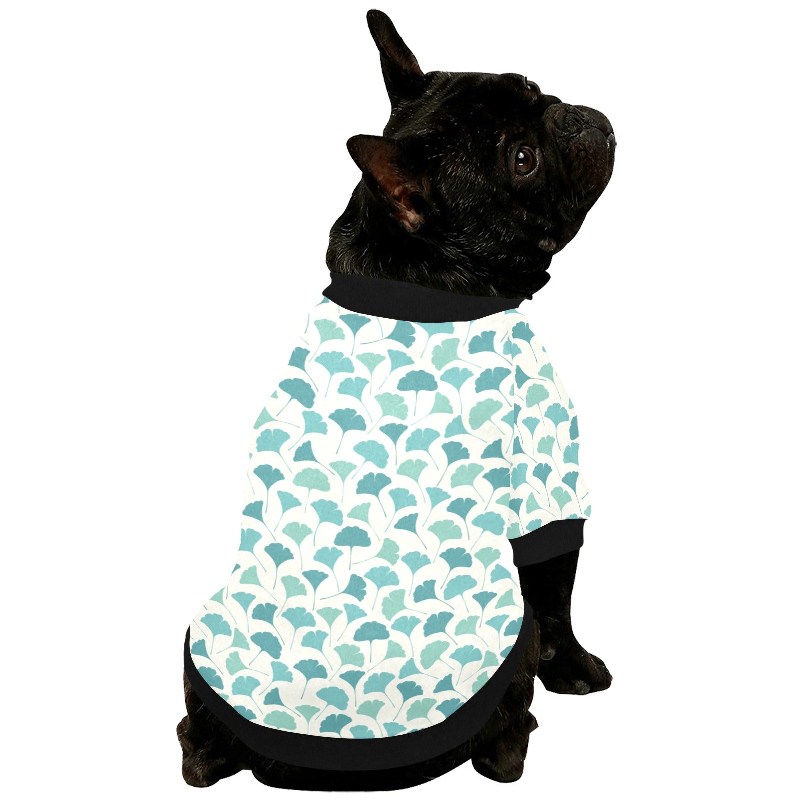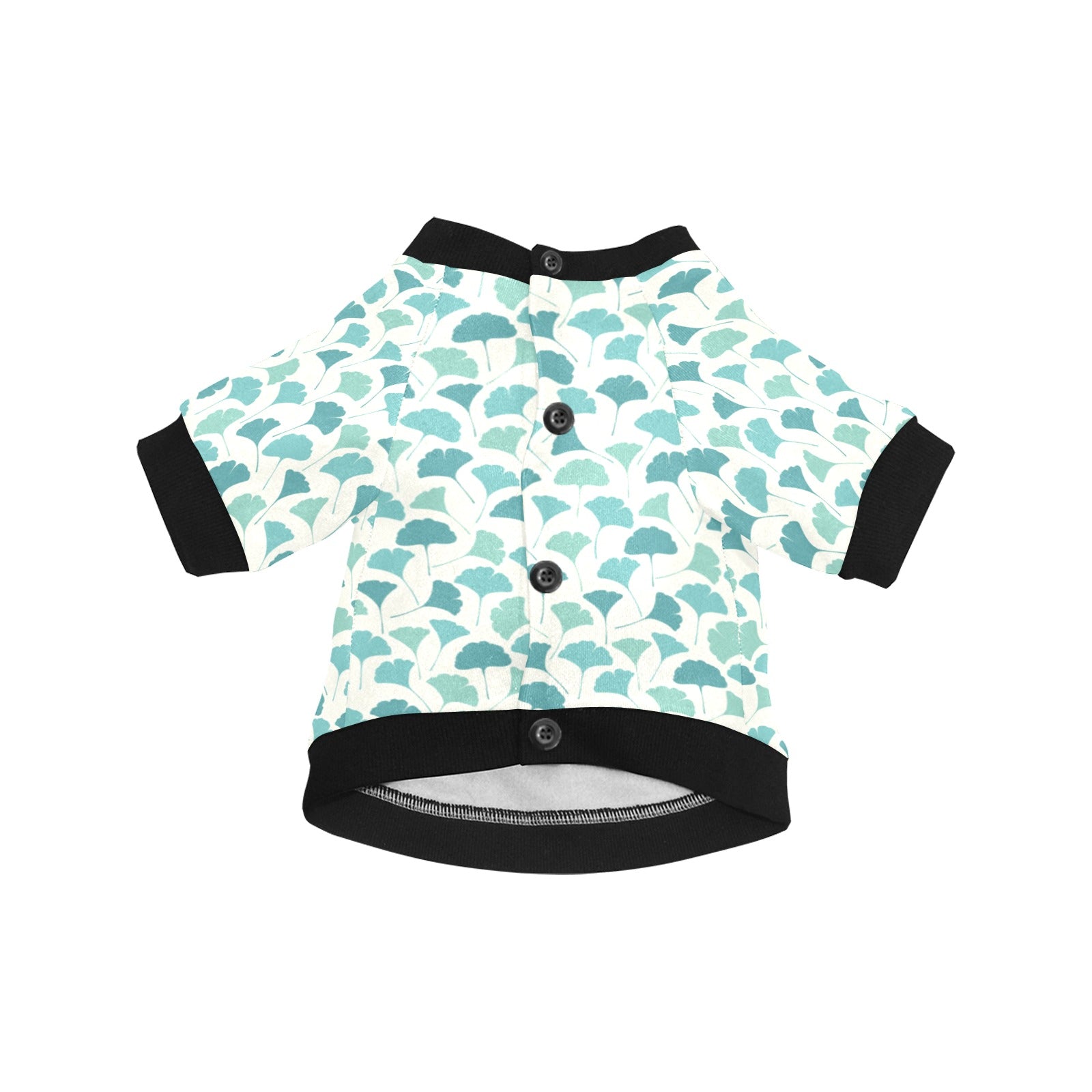 Green ginkgo leaves pattern All Over Print Pet Dog Round Neck Fuzzy Shirt
