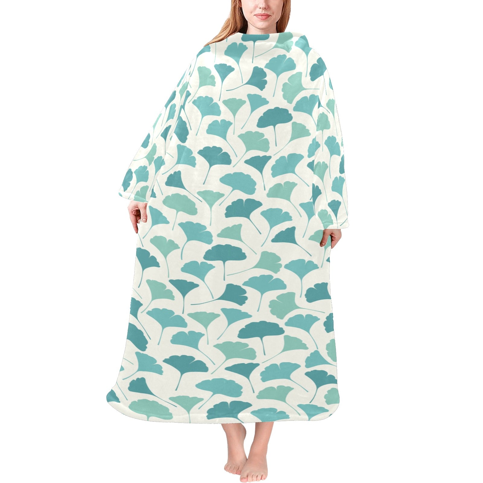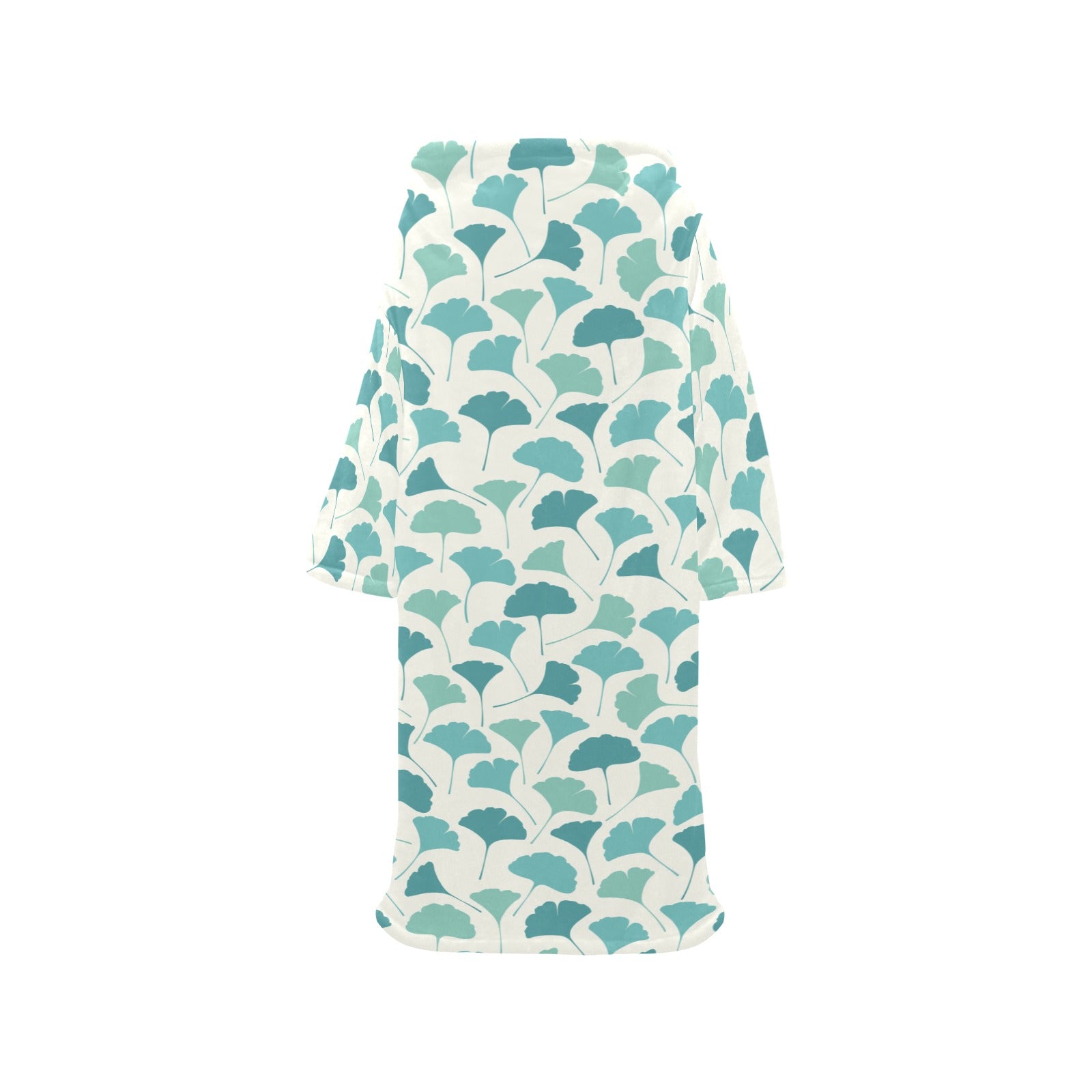 Green ginkgo leaves pattern Blanket Robe with Sleeves