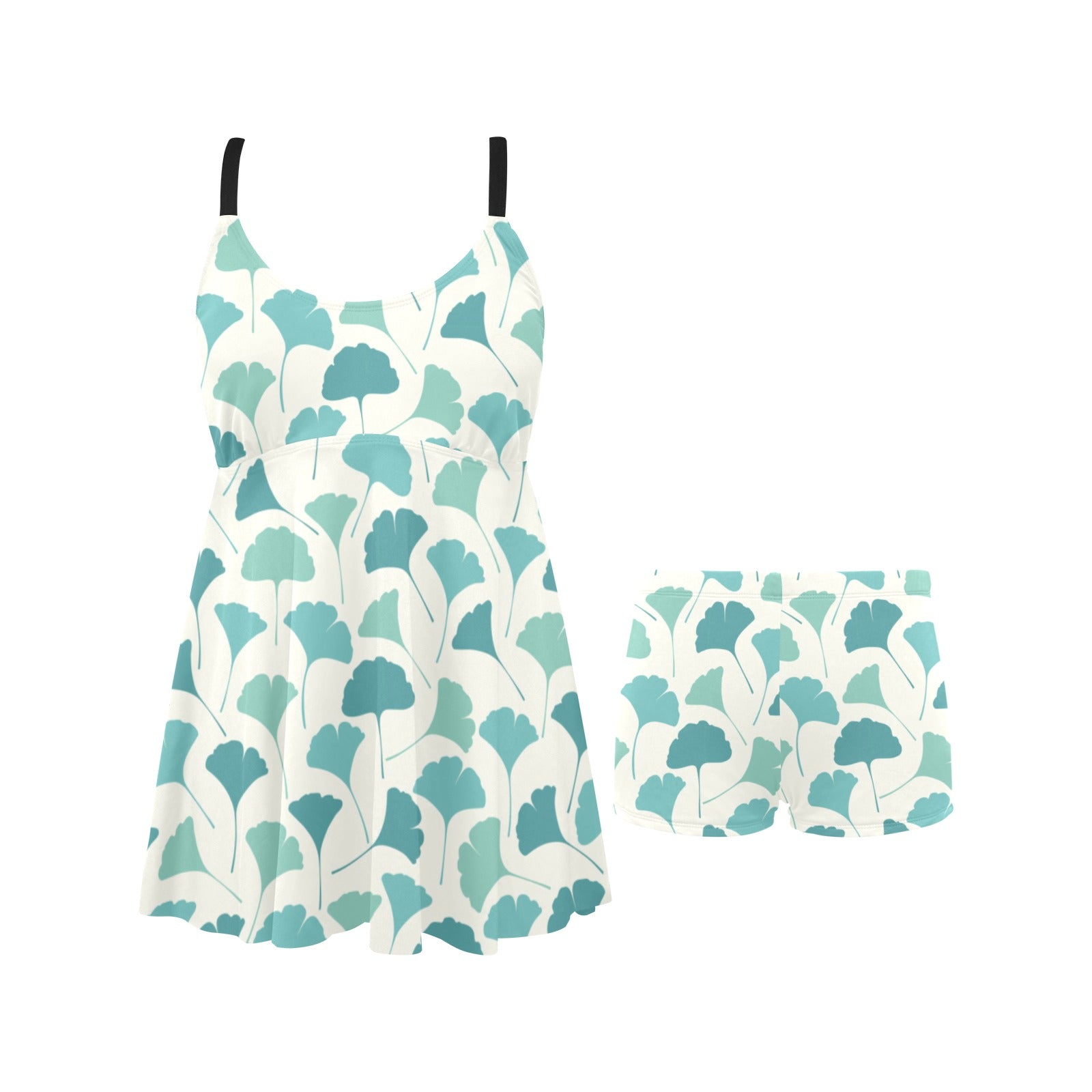 Green ginkgo leaves pattern Chest Sexy Pleated Two Piece Swim Dress