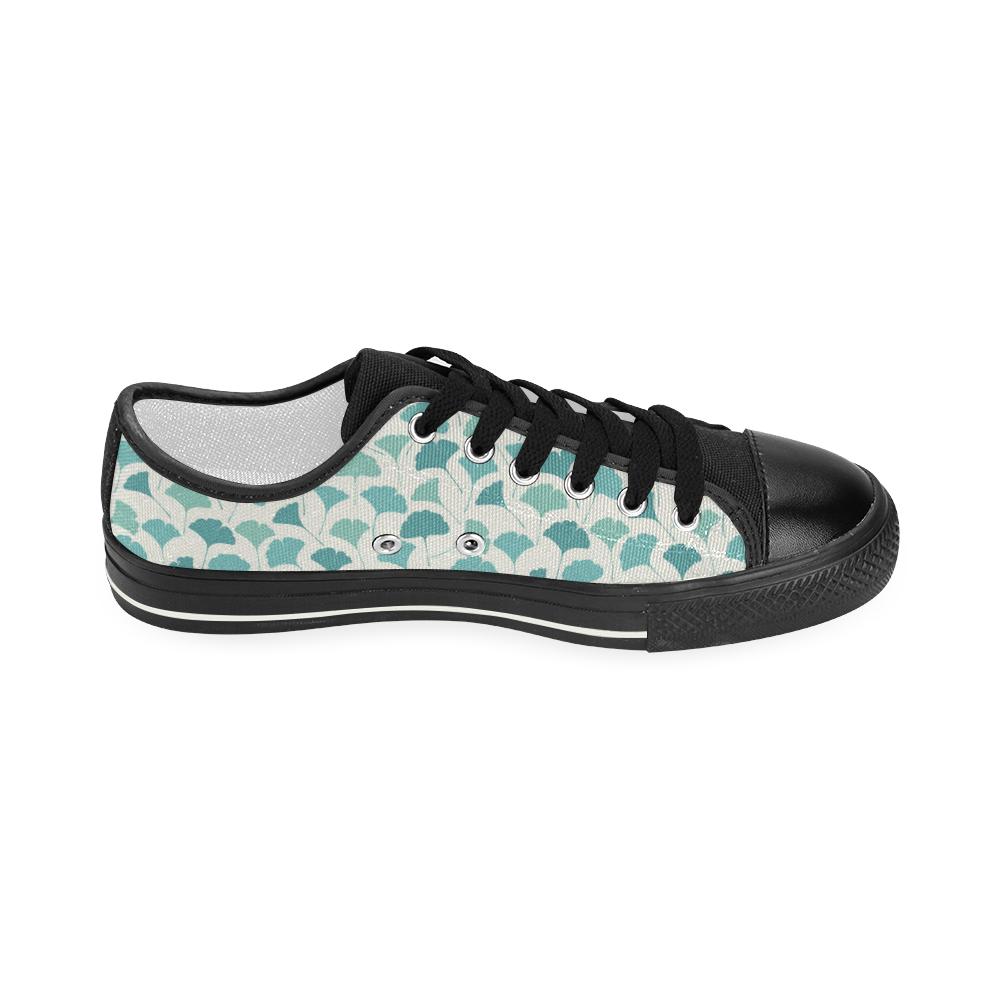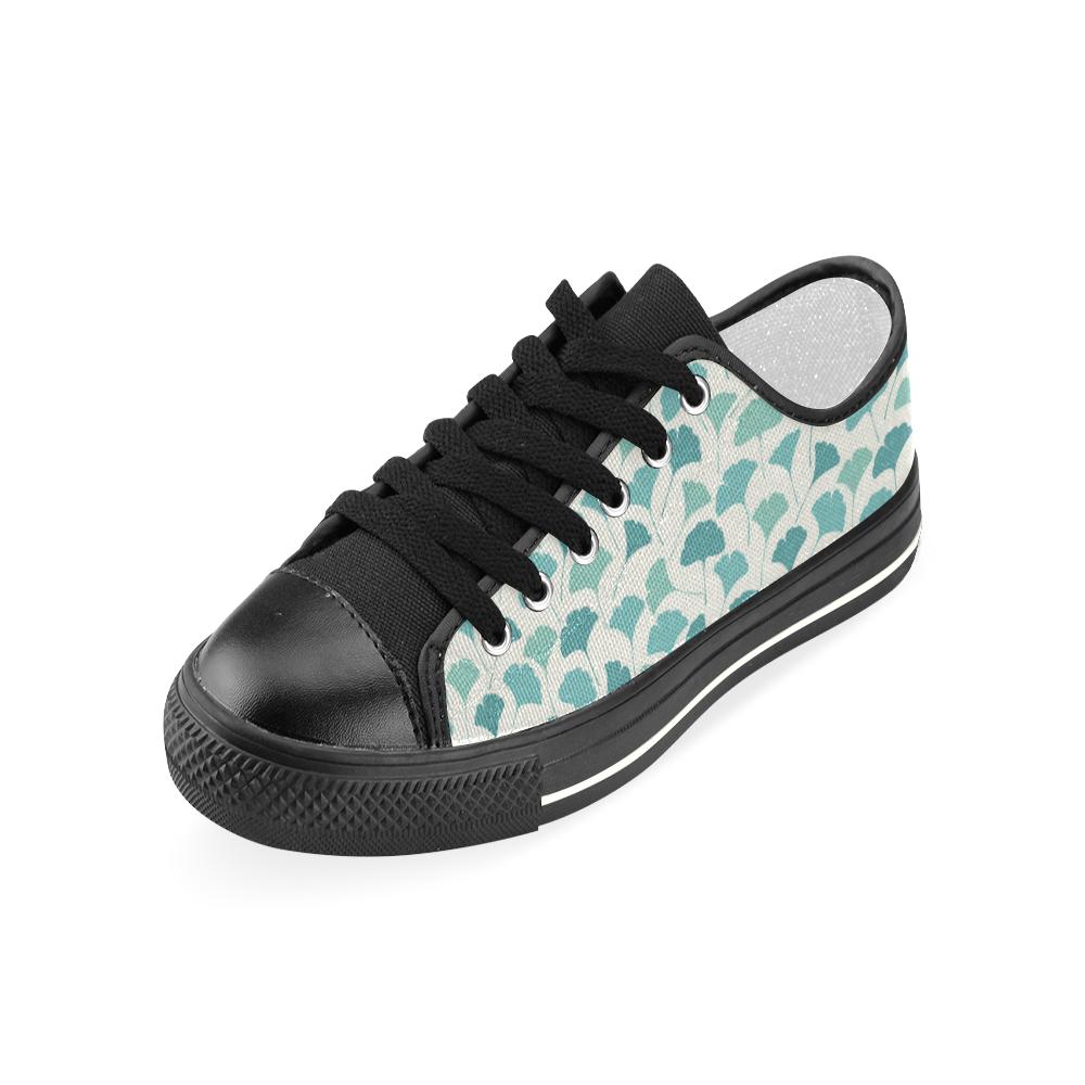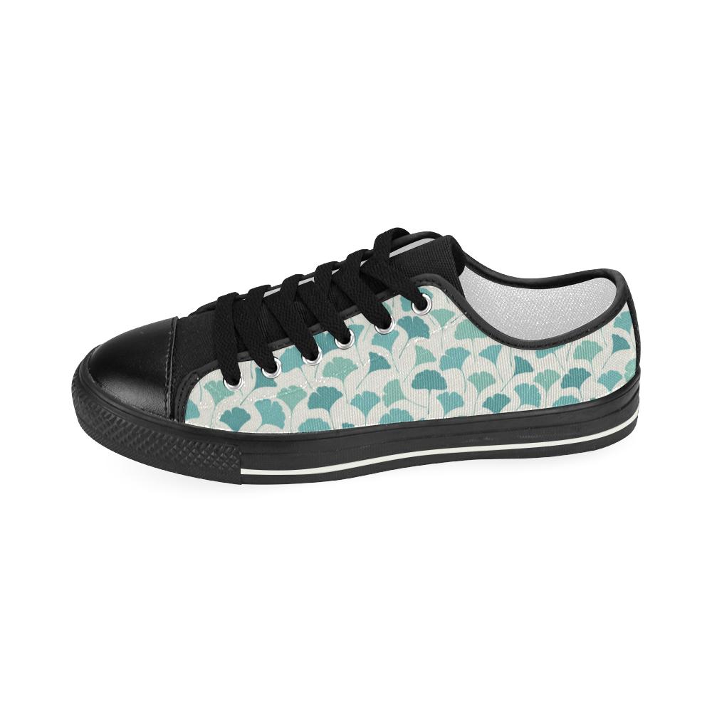 Green ginkgo leaves pattern Kids' Boys' Girls' Low Top Canvas Shoes Black