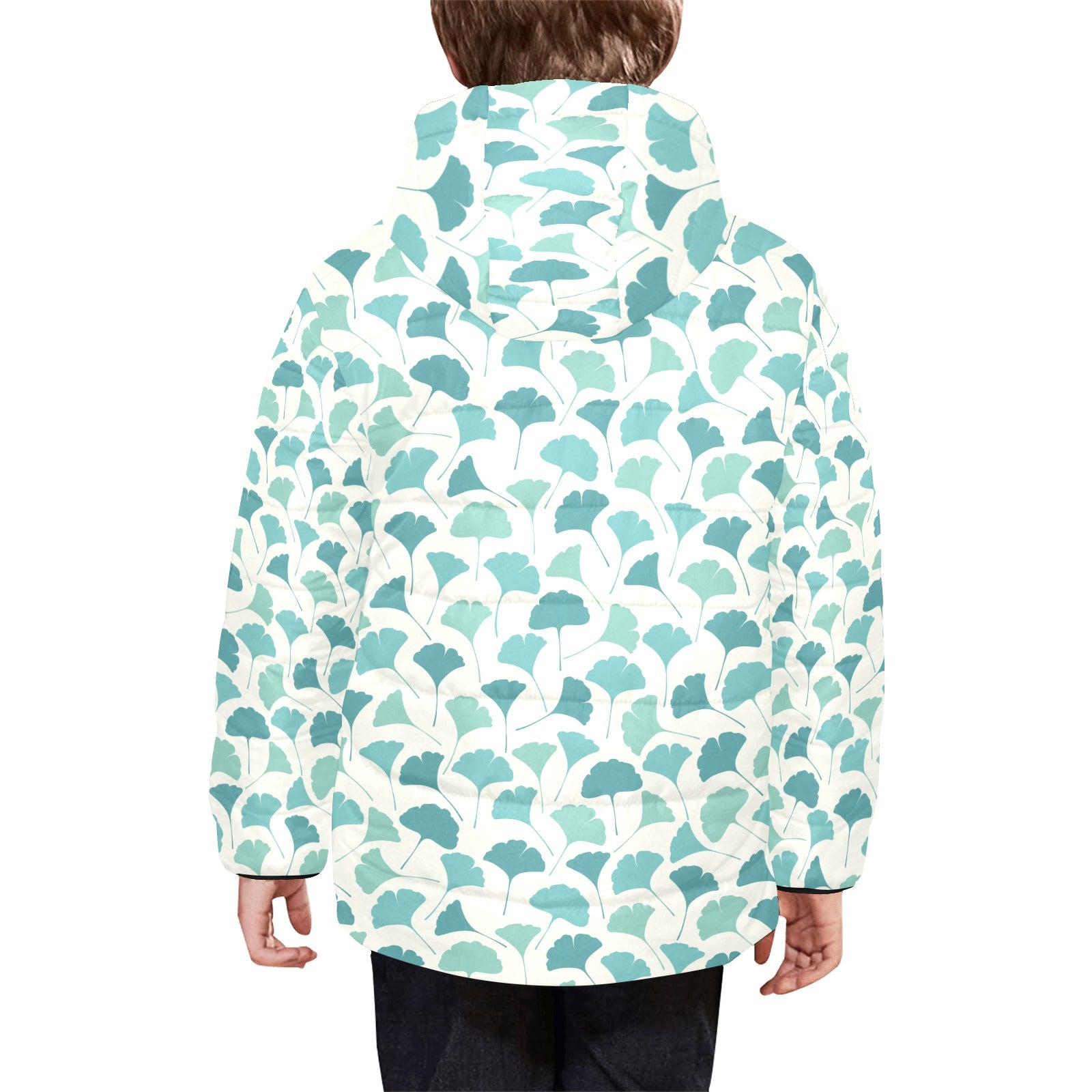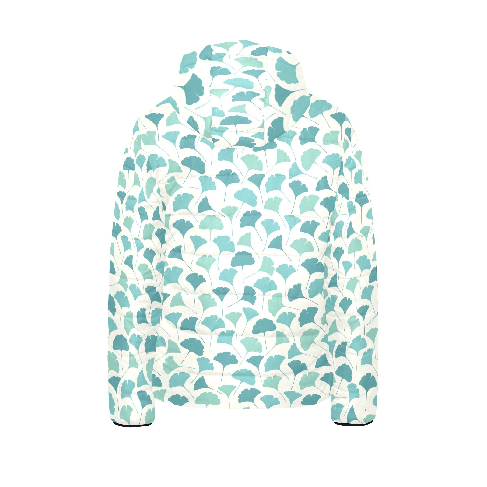 Green ginkgo leaves pattern Kids' Boys' Girls' Padded Hooded Jacket