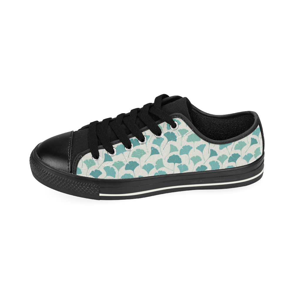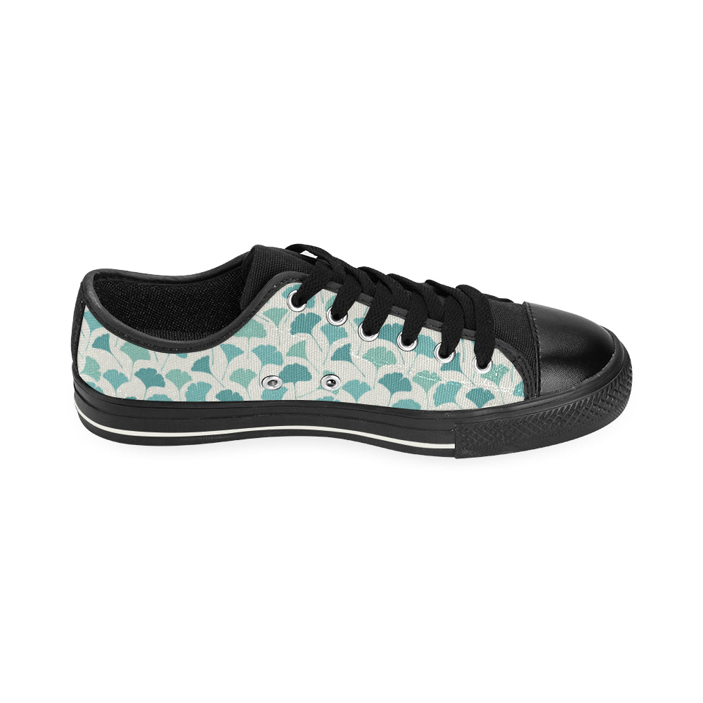 Green ginkgo leaves pattern Men's Low Top Canvas Shoes Black
