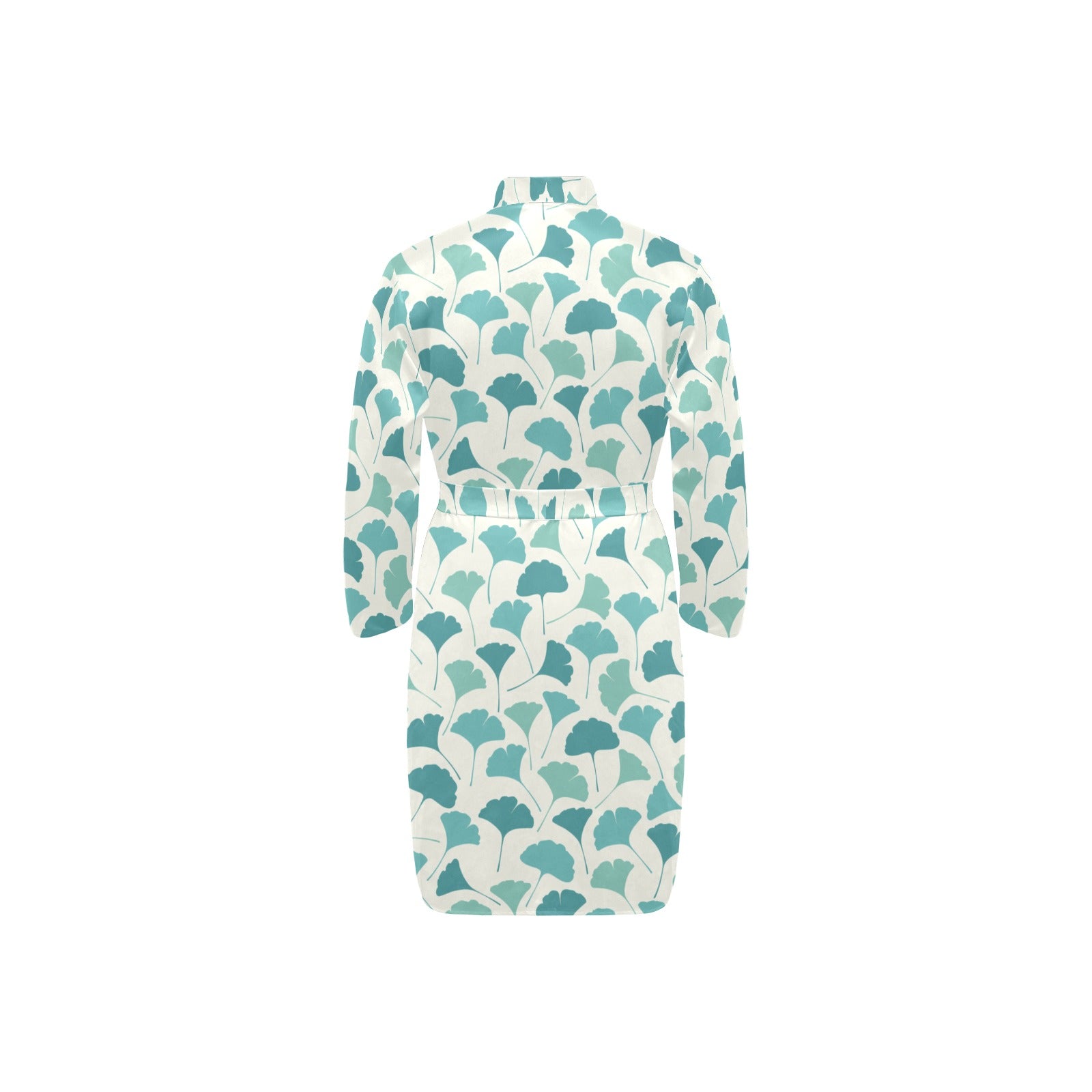 Green ginkgo leaves pattern Men's Long Sleeve Belted Night Robe