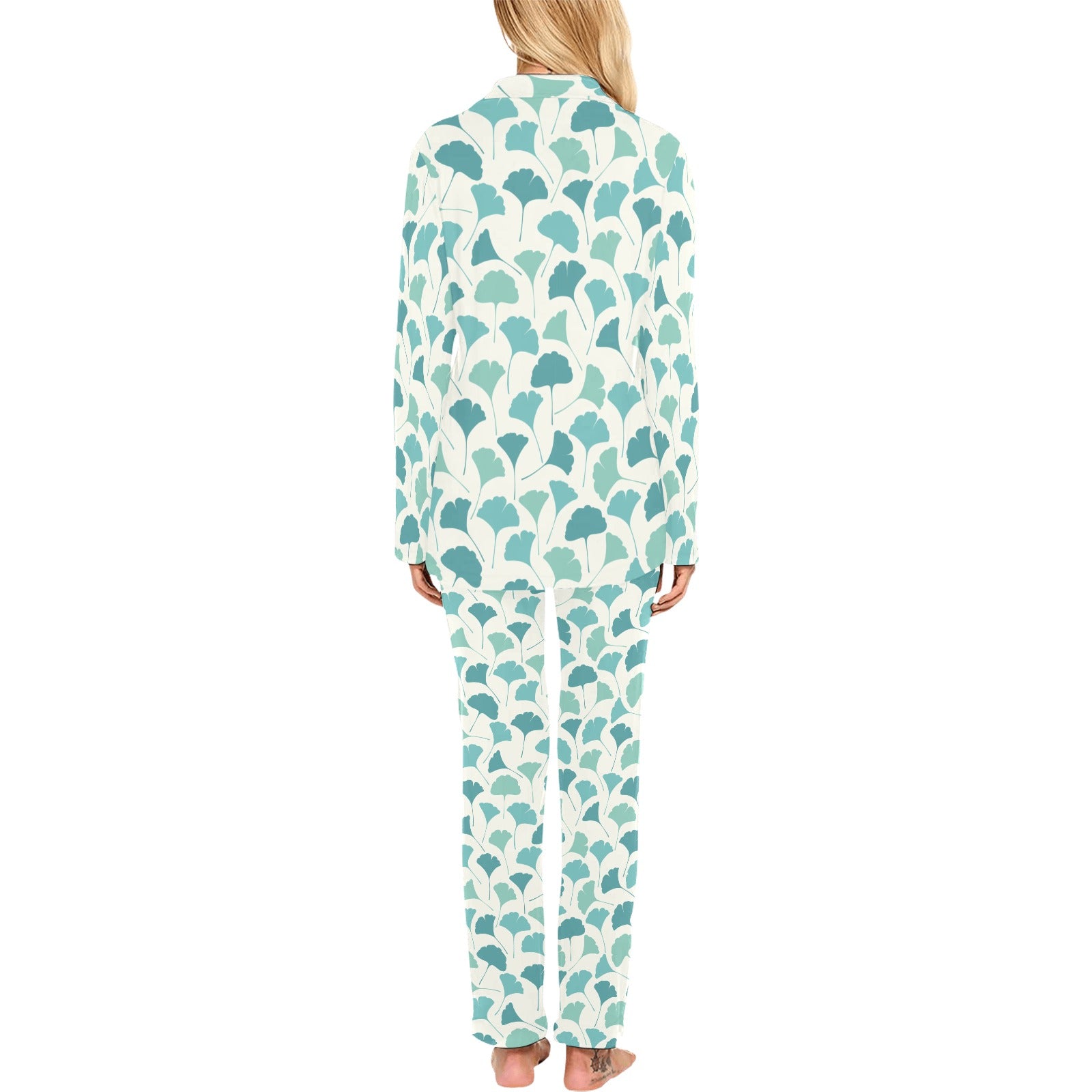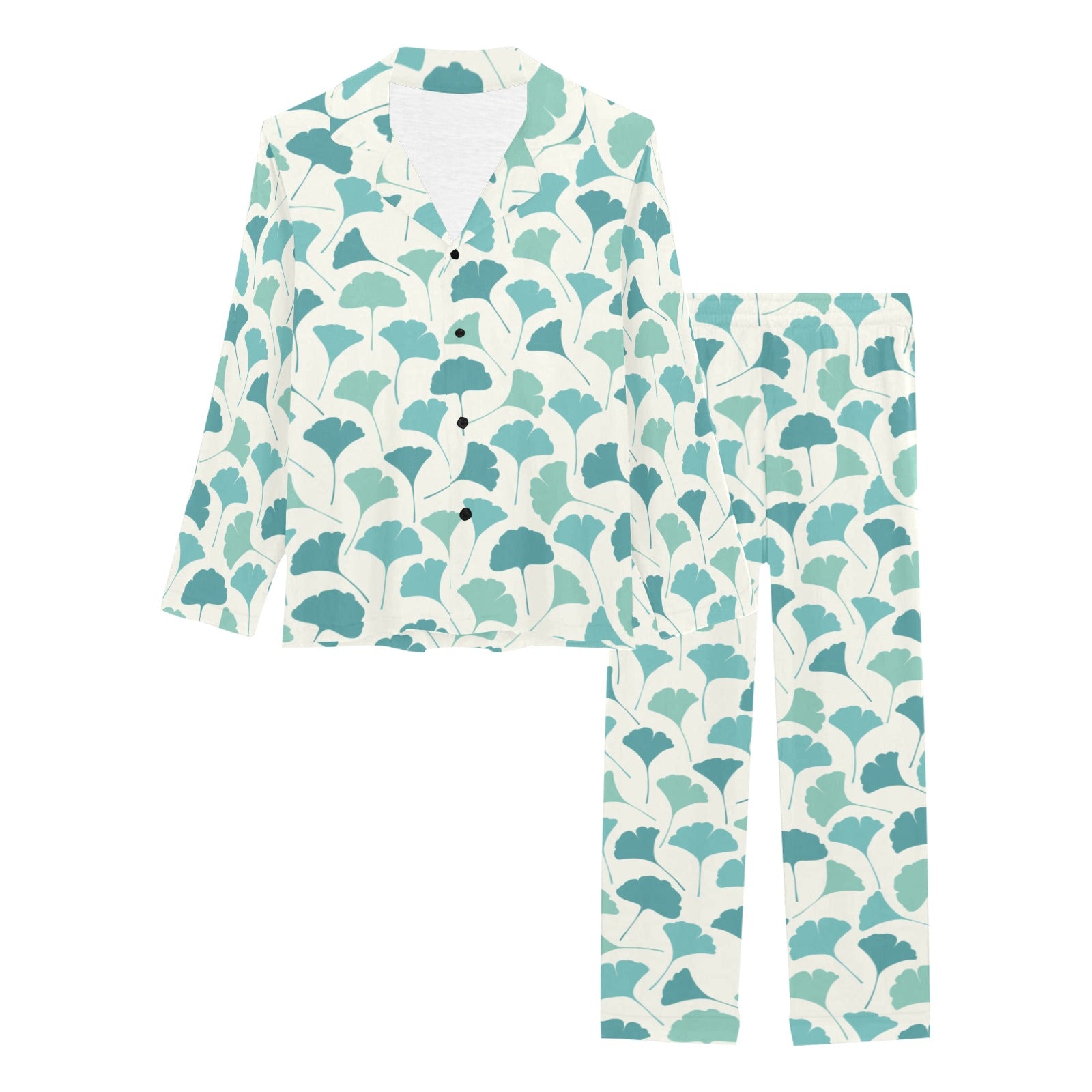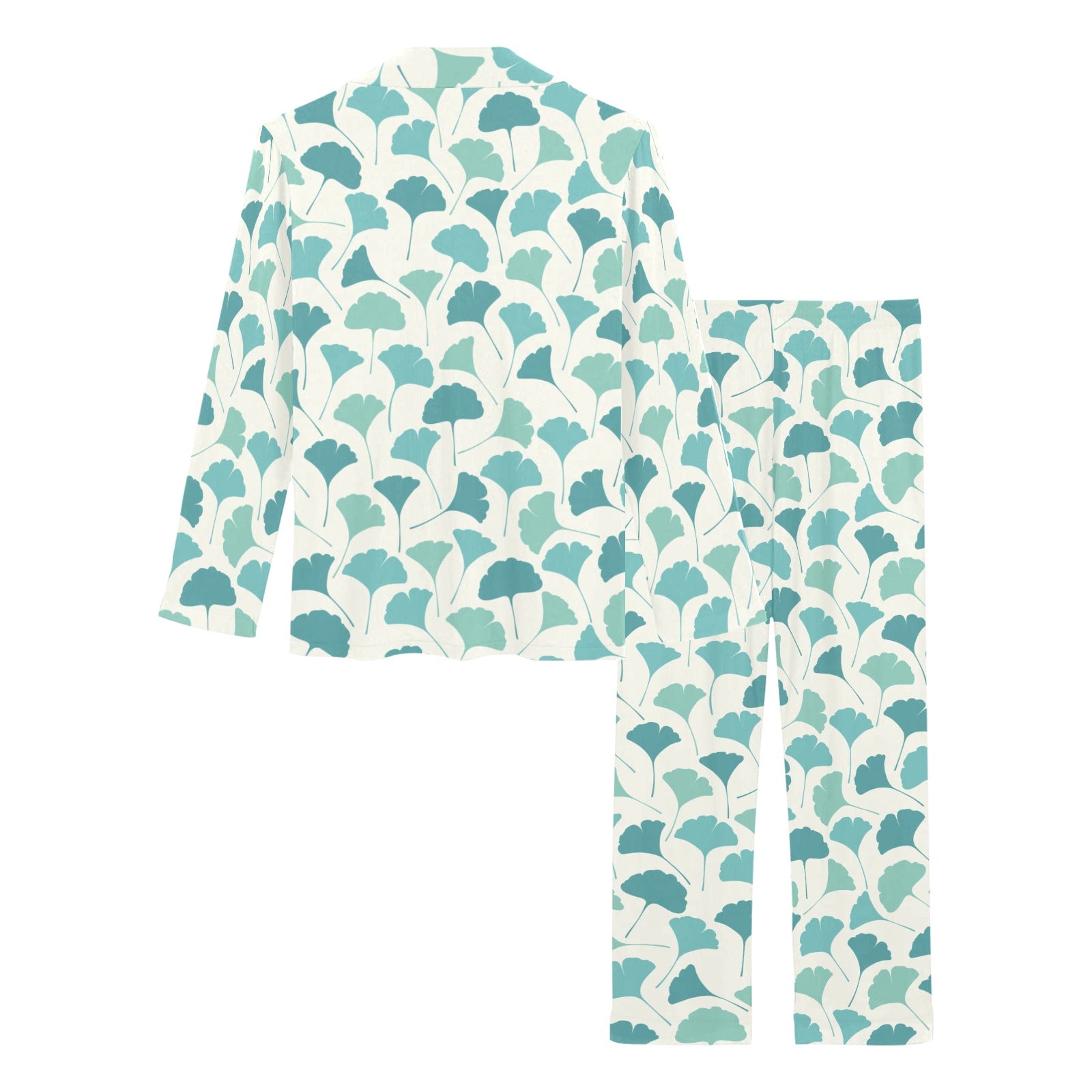 Green ginkgo leaves pattern Women's Long Pajama Set