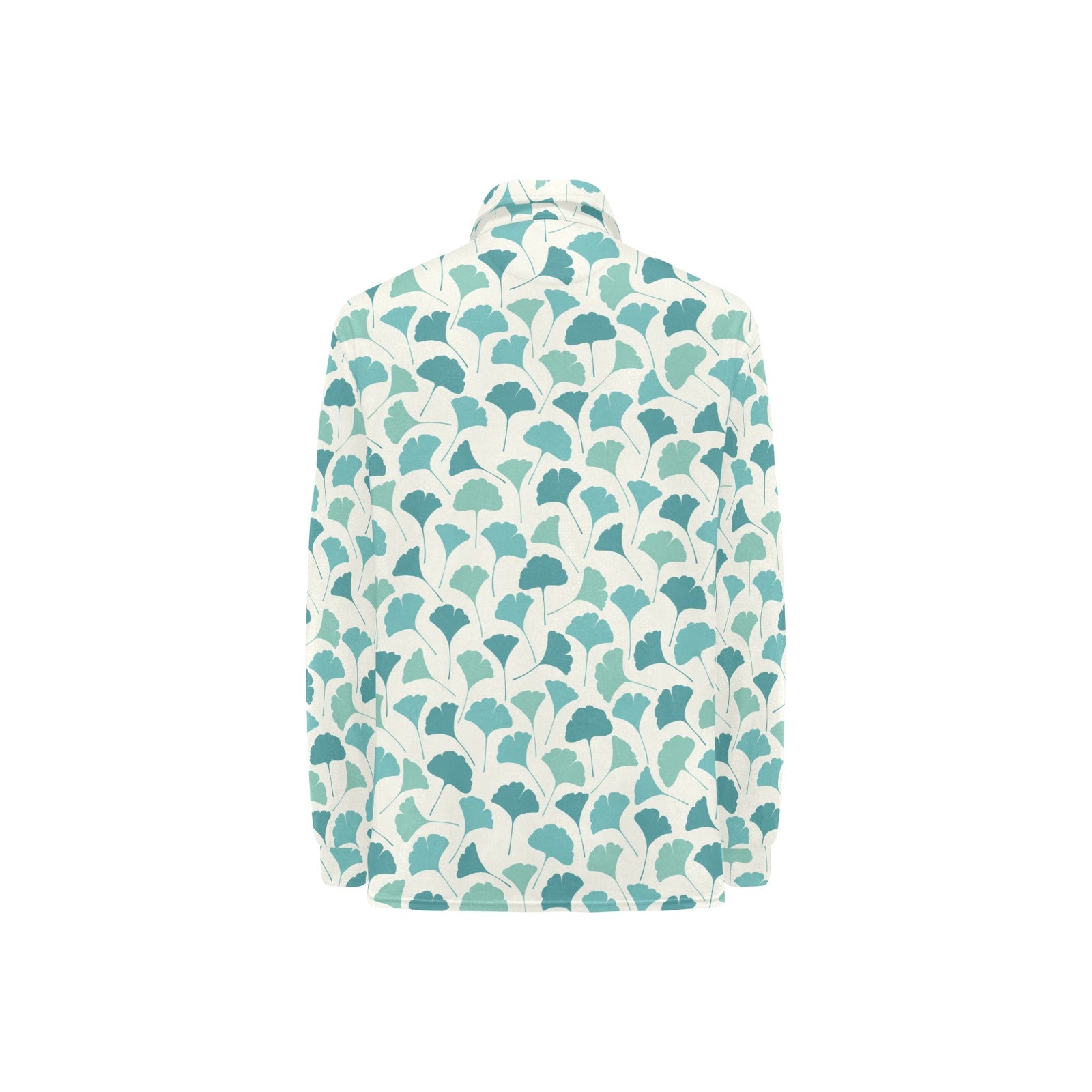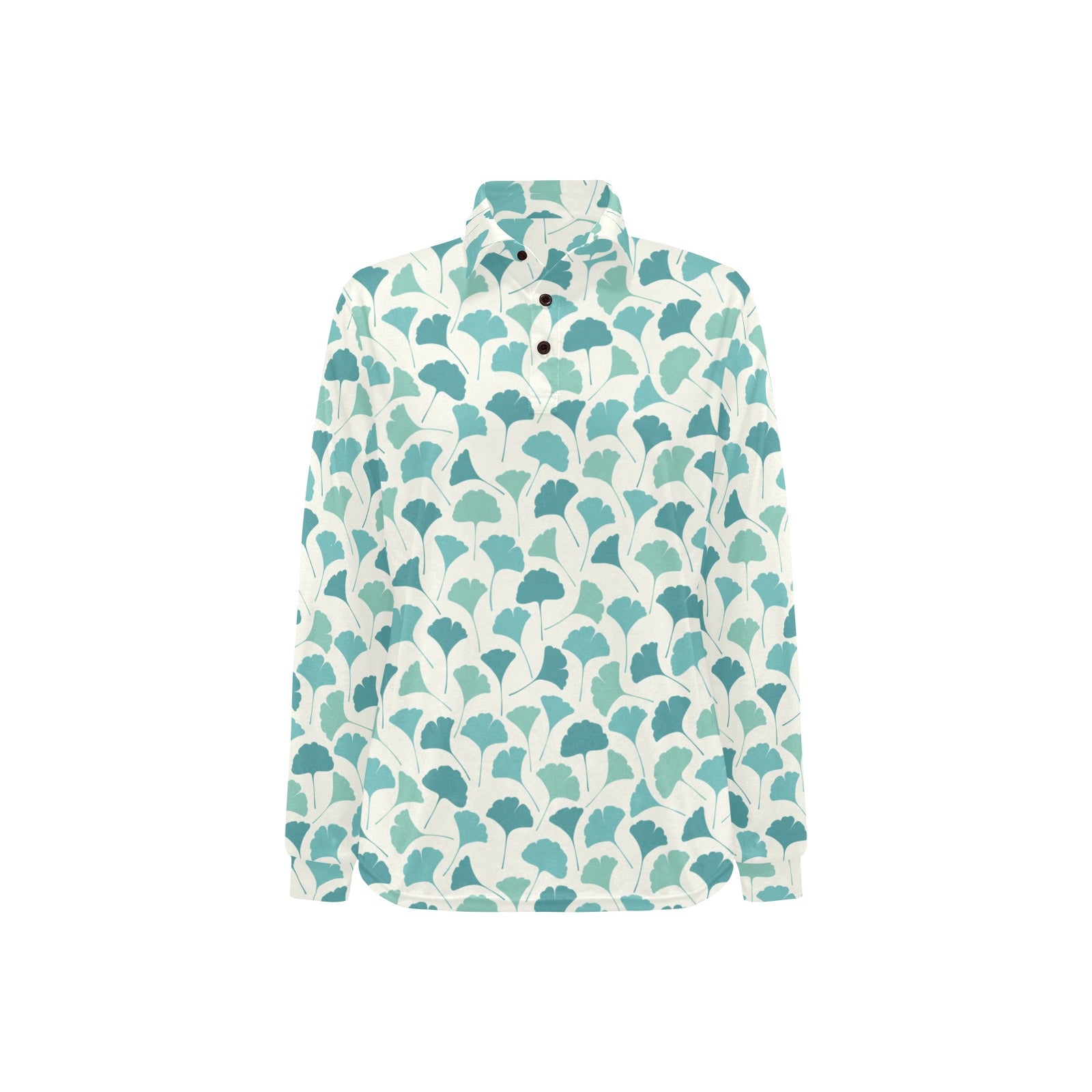 Green ginkgo leaves pattern Women's Long Sleeve Polo Shirt