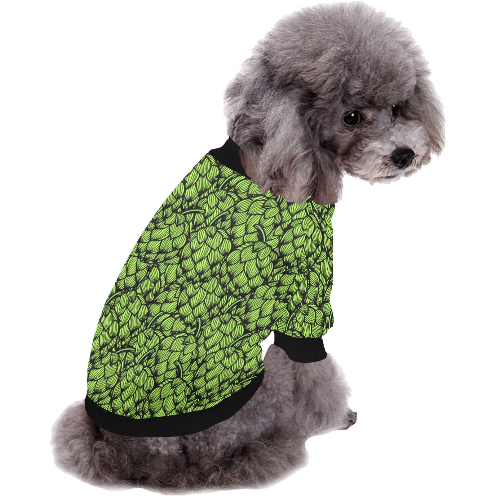 Green hop pattern All Over Print Pet Dog Round Neck Fuzzy Shirt