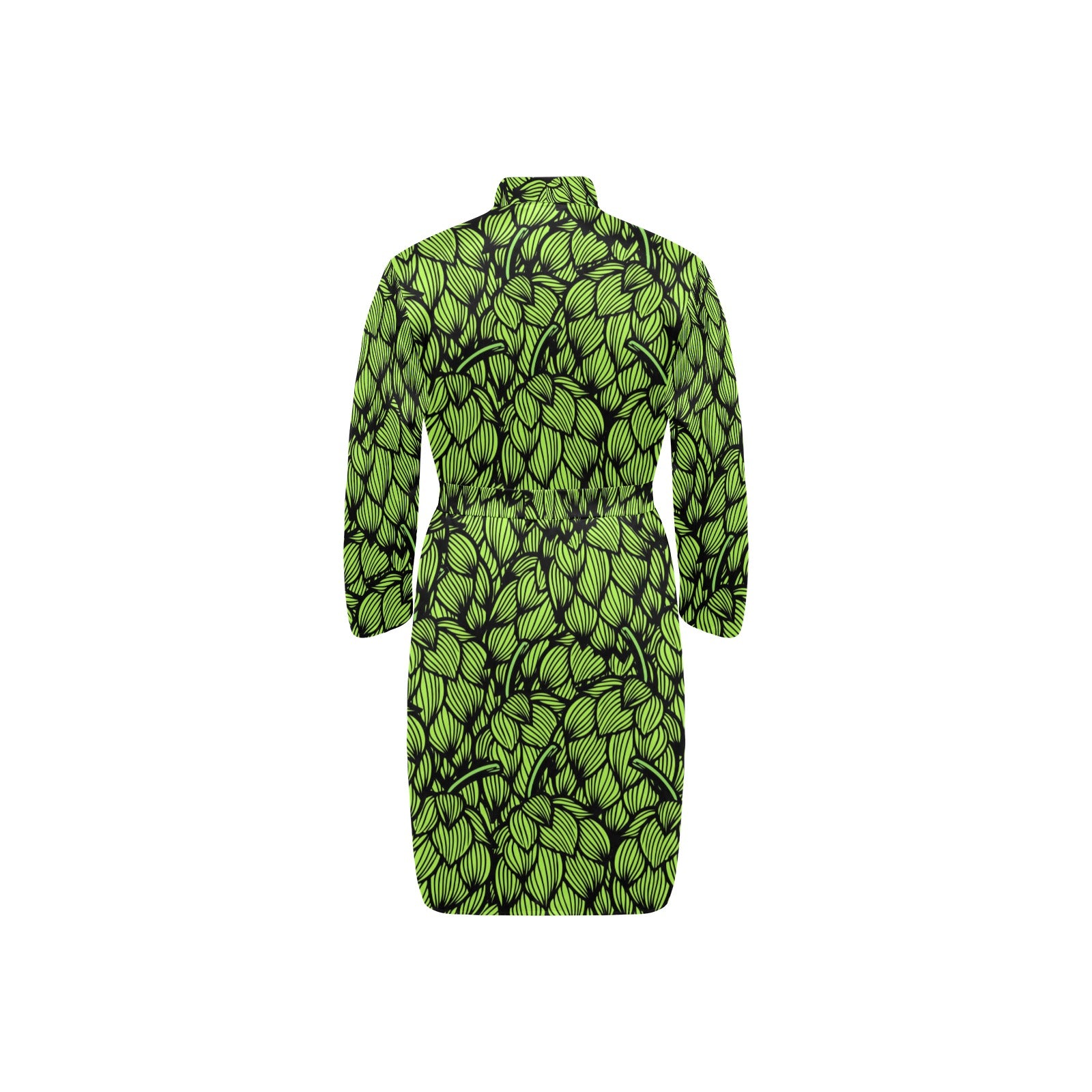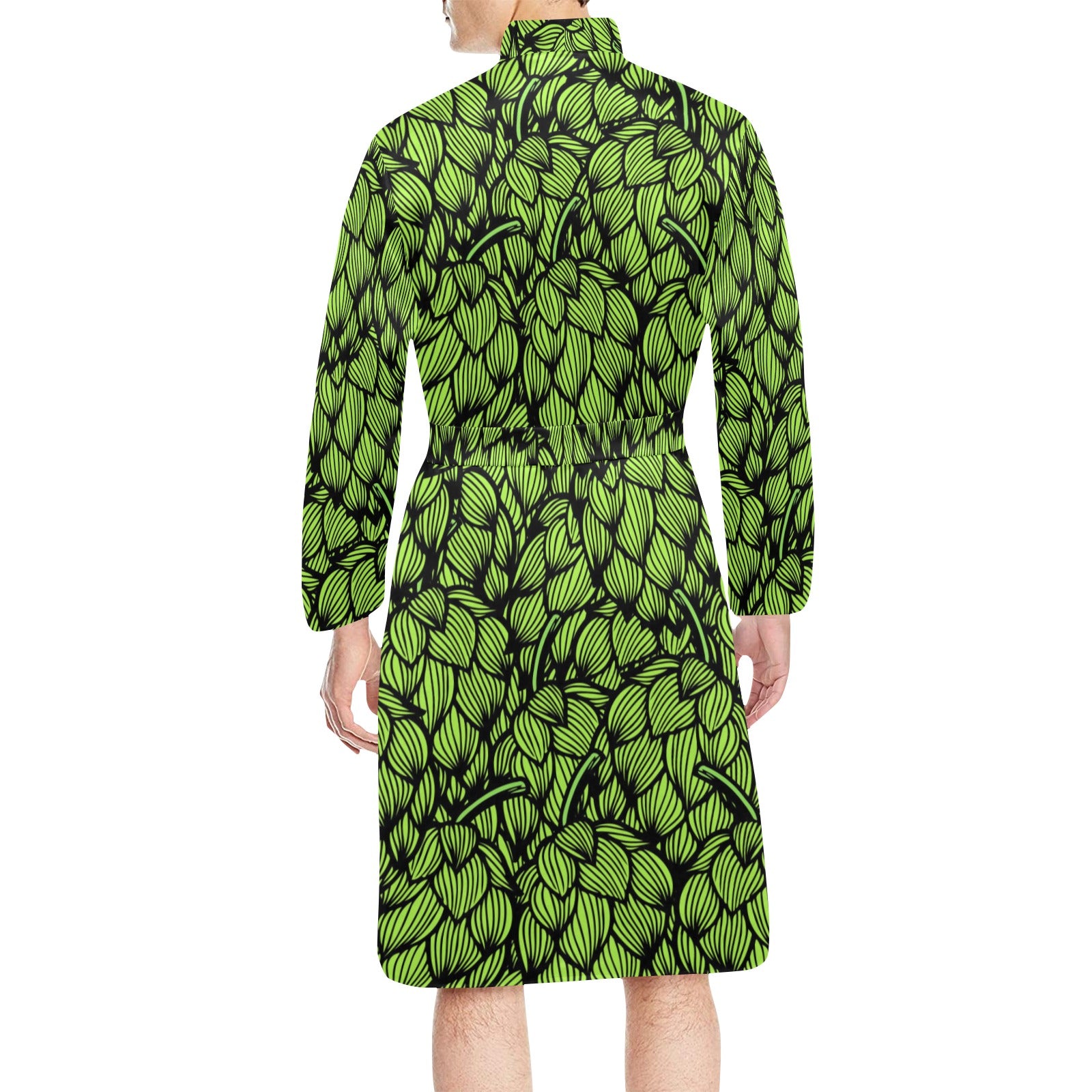 Green hop pattern Men's Long Sleeve Belted Night Robe
