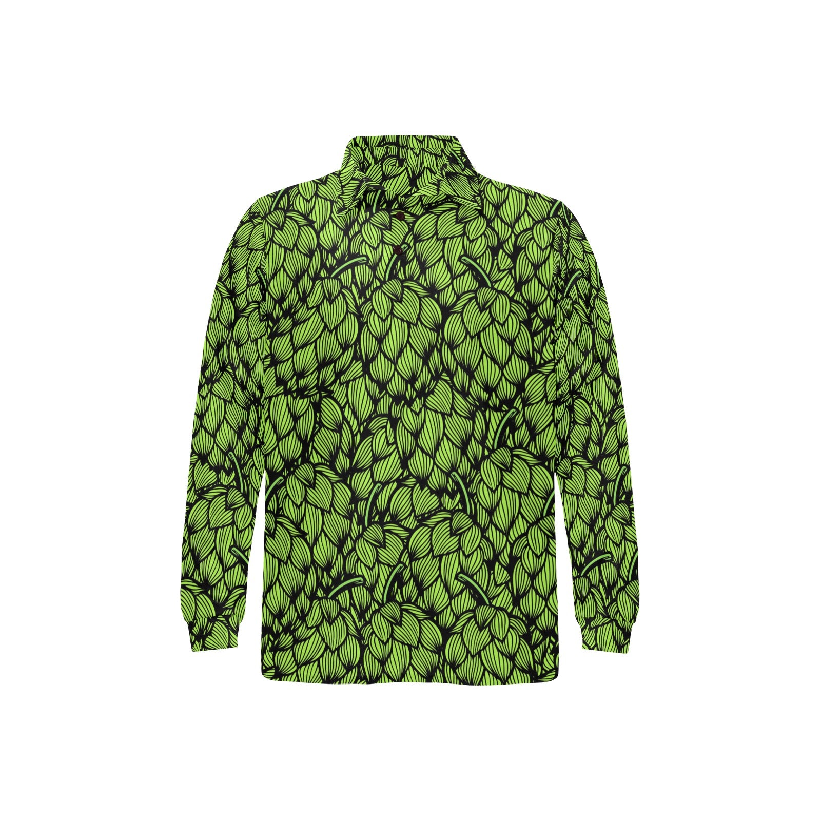 Green hop pattern Men's Long Sleeve Polo Shirt