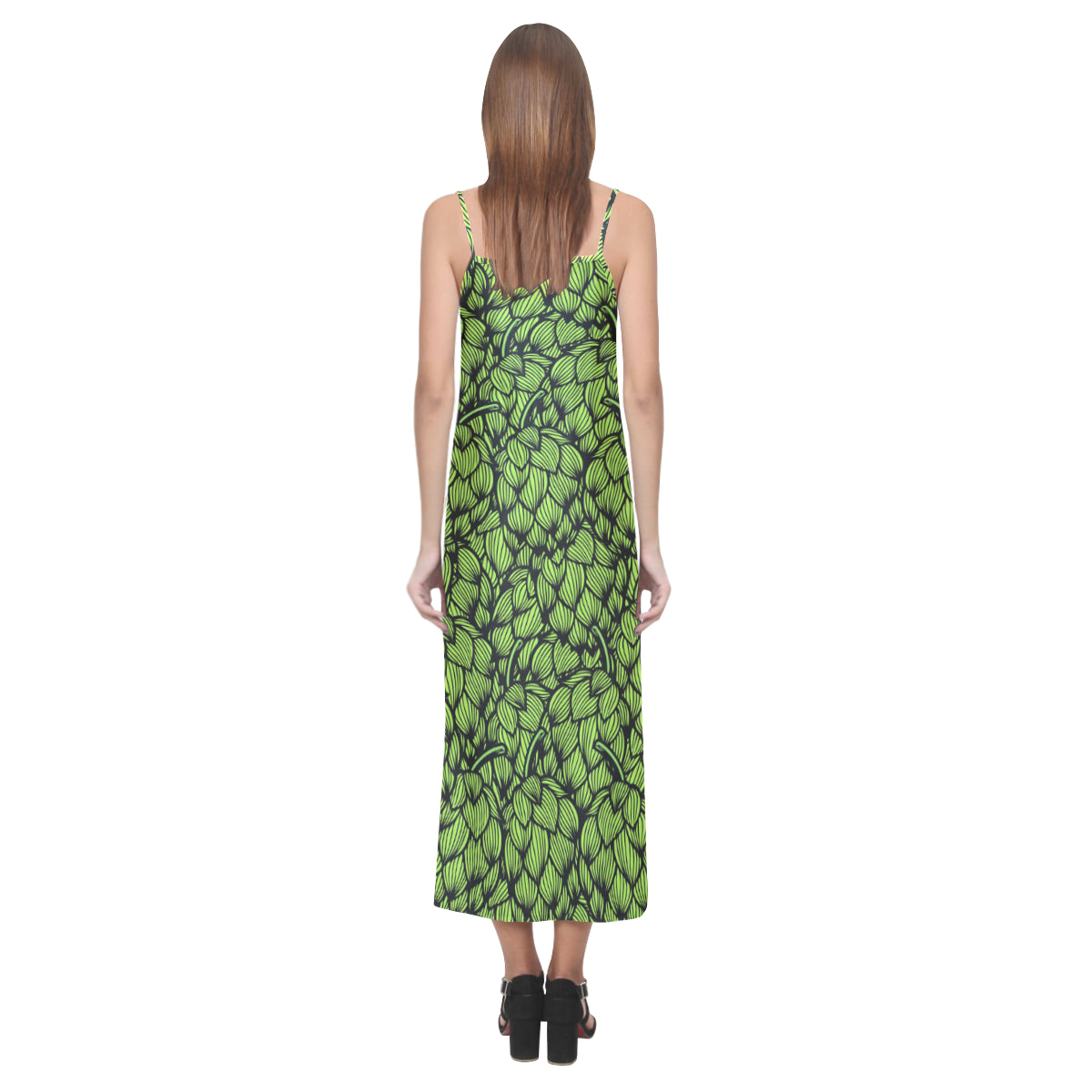 Green hop pattern V-Neck Open Fork Long Dress is a uniqued design and limited item. It made to order, hand printed, and sewn with love in our factory.