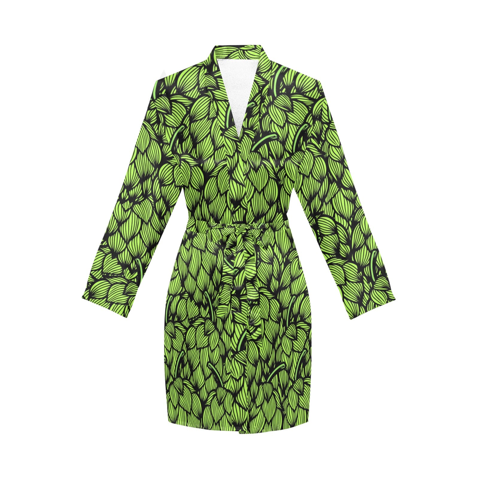 Green hop pattern Women's Long Sleeve Belted Night Robe