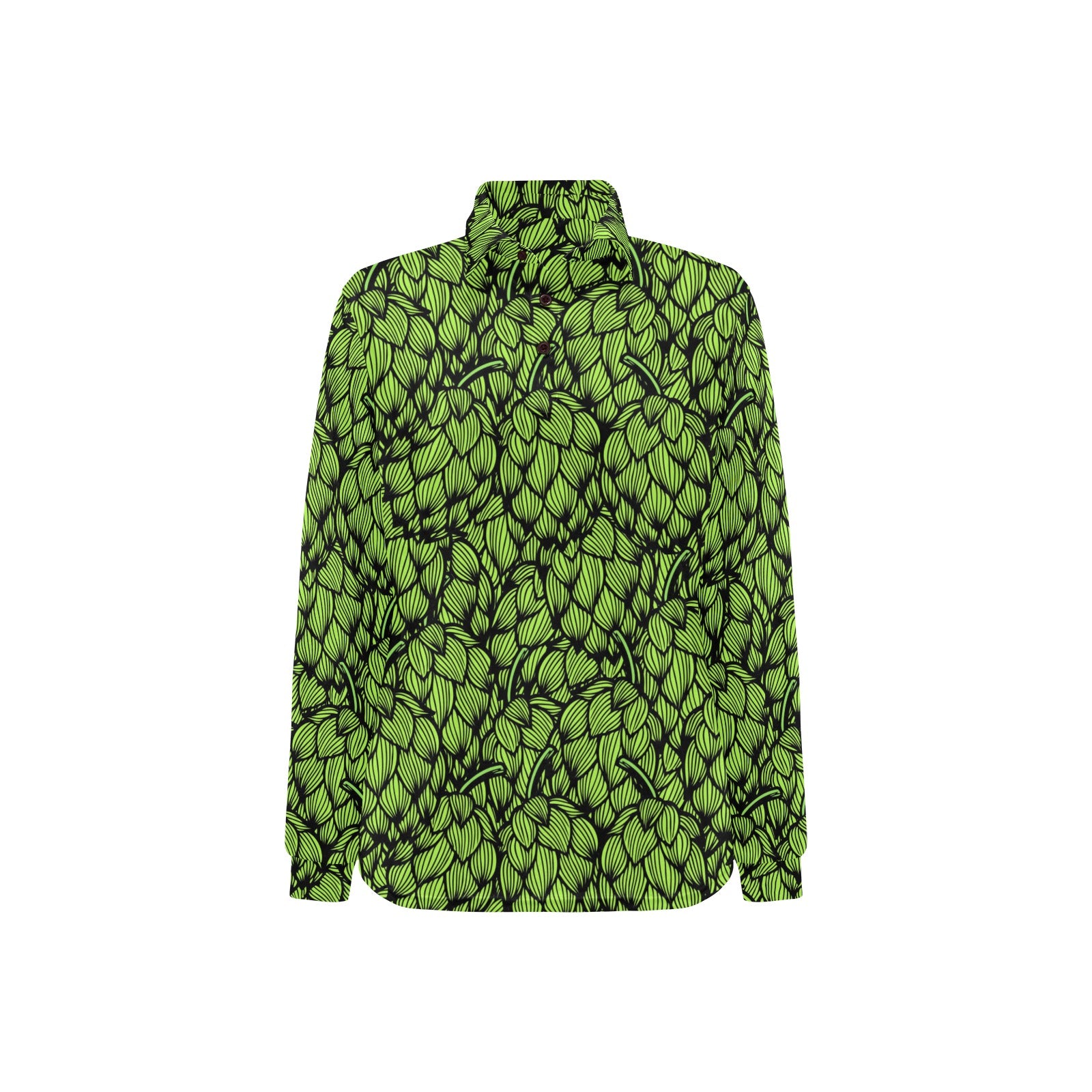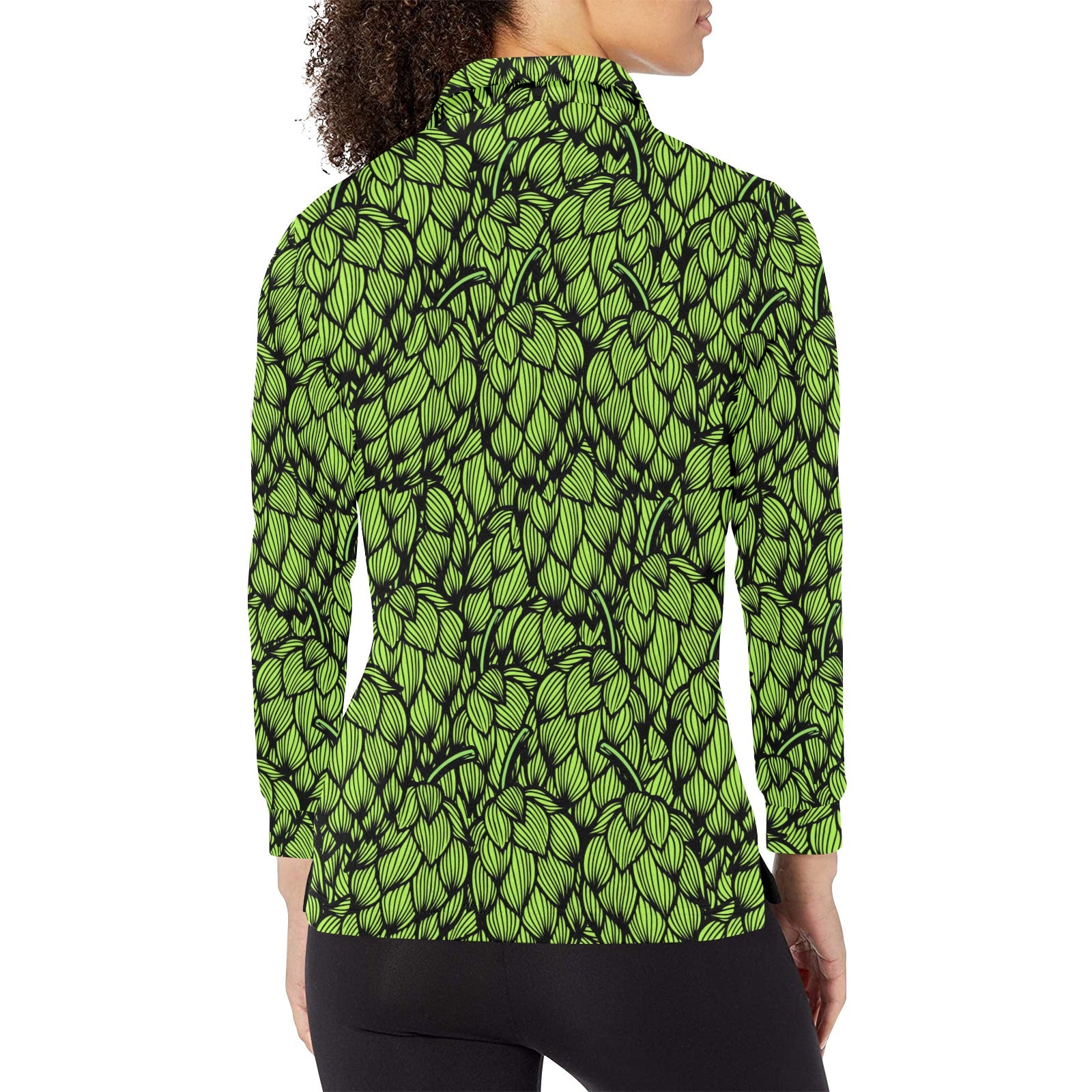 Green hop pattern Women's Long Sleeve Polo Shirt