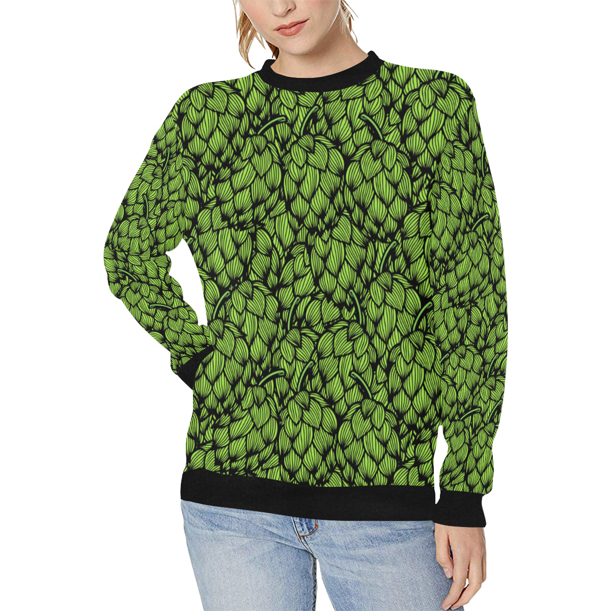 Green hop pattern Women's Crew Neck Sweatshirt is a uniqued design and limited item. It made to order, hand printed, and sewn with love in our factory.