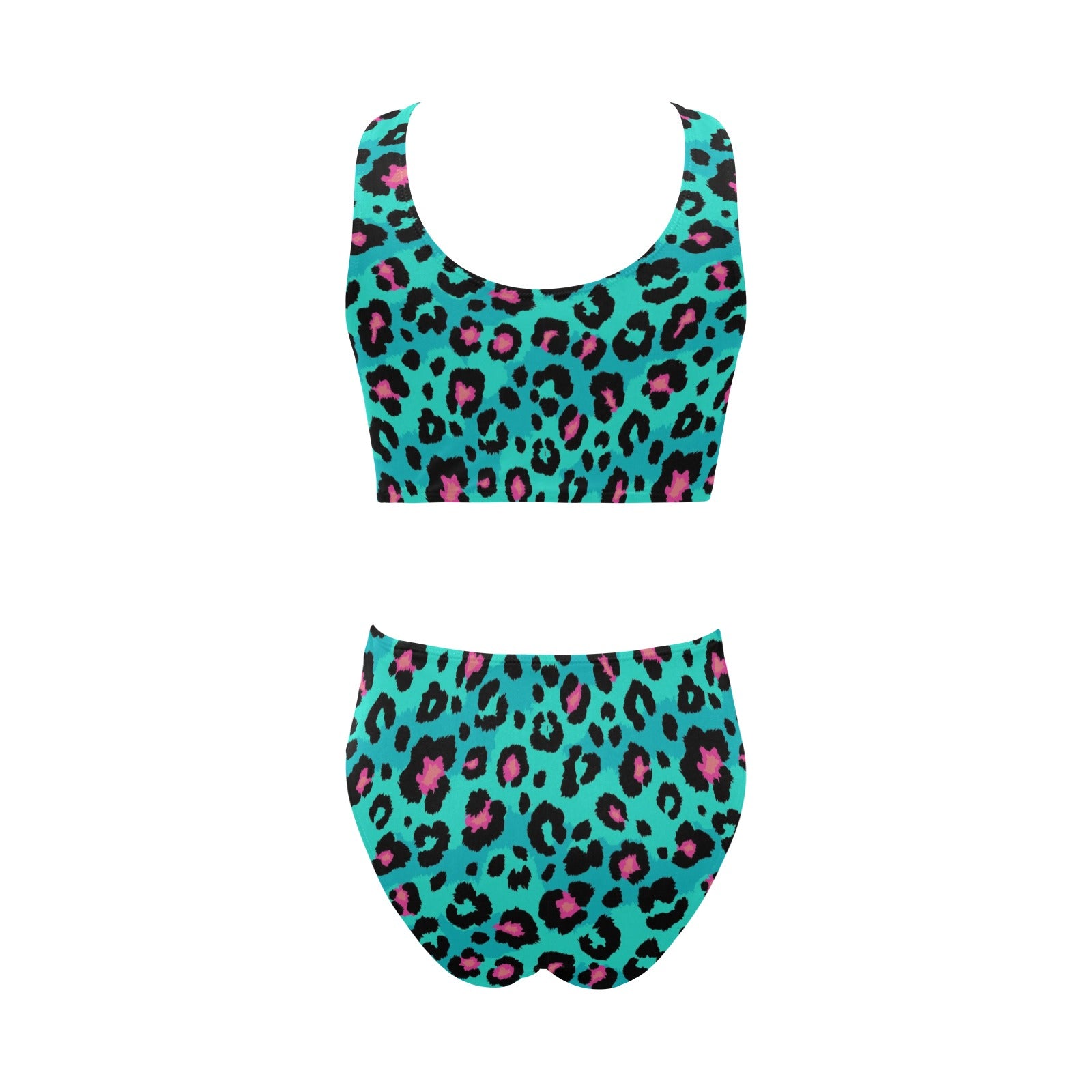 Green leopard skin print pattern Chest Bowknot High Waisted Bikini Swimsuit