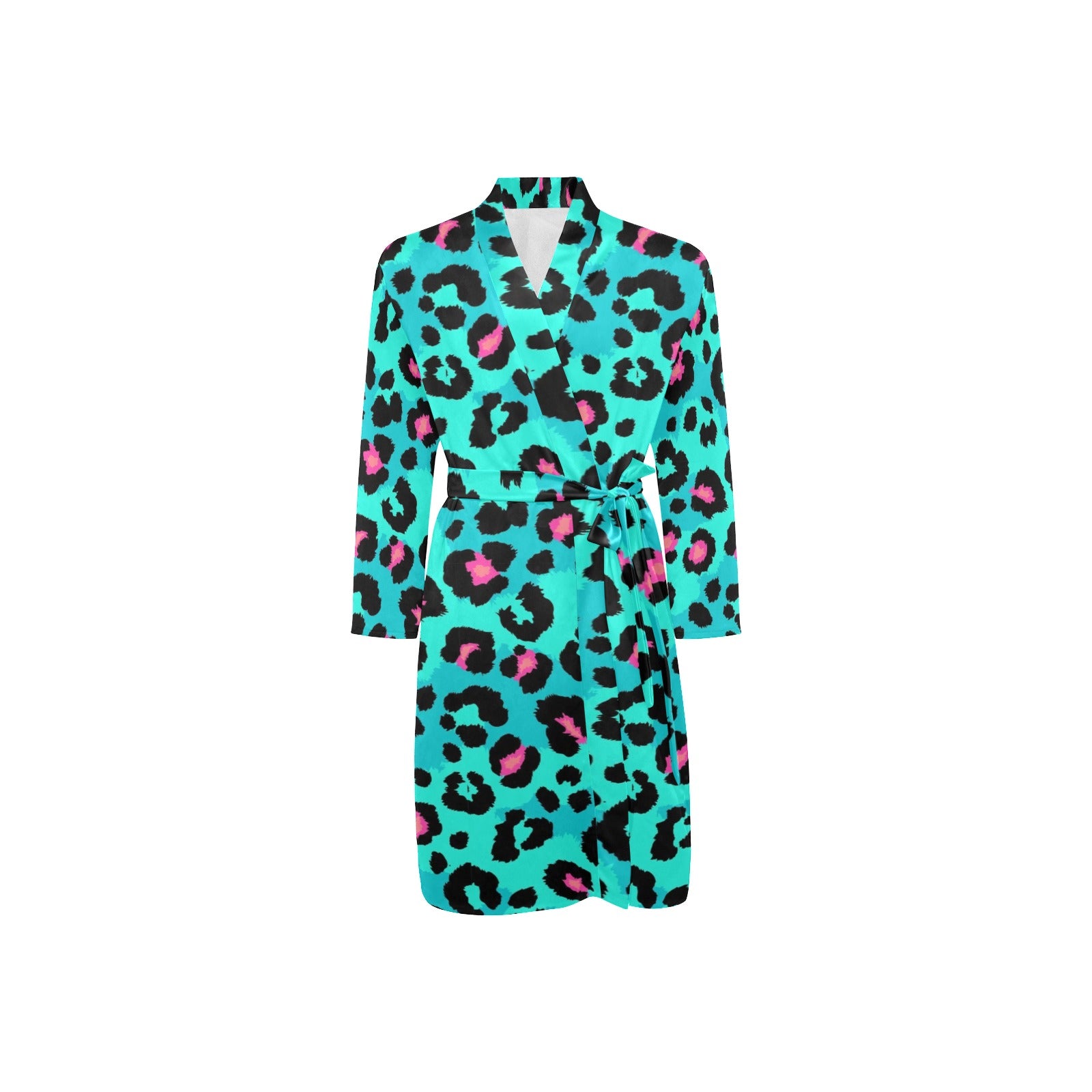 Green leopard skin print pattern Men's Long Sleeve Belted Night Robe