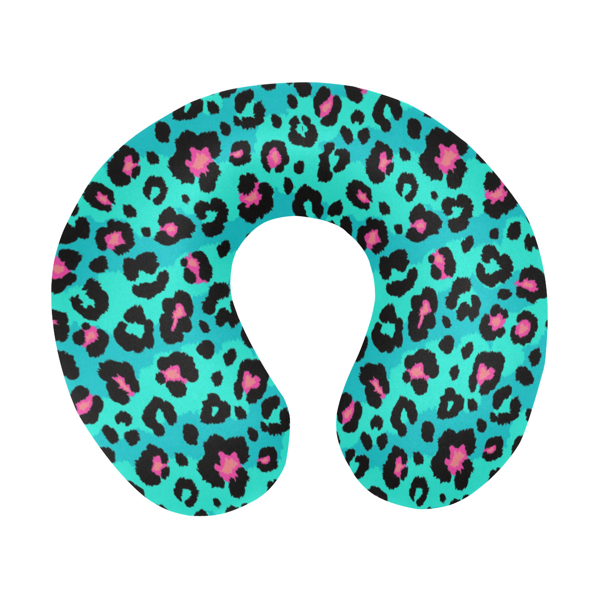 Green leopard skin print pattern U-Shaped Travel Neck Pillow