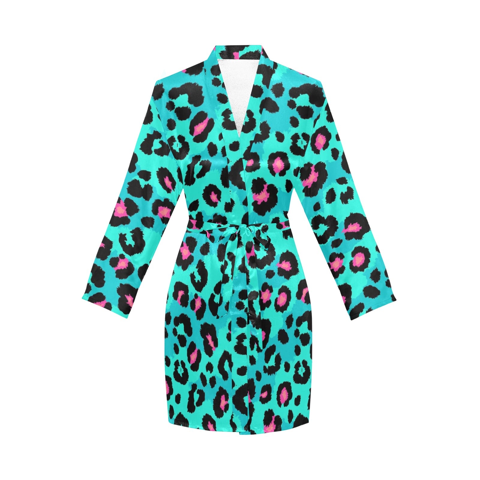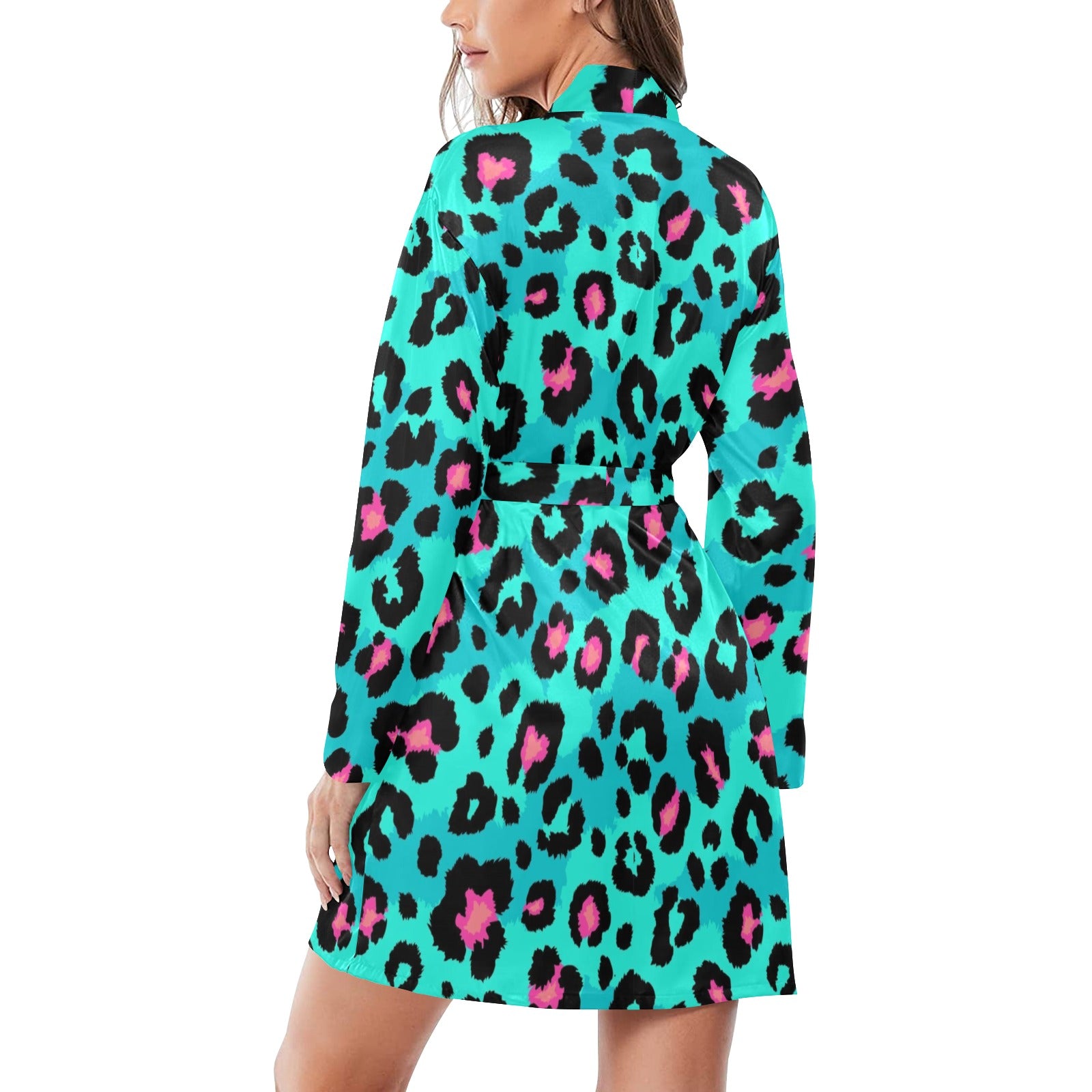 Green leopard skin print pattern Women's Long Sleeve Belted Night Robe