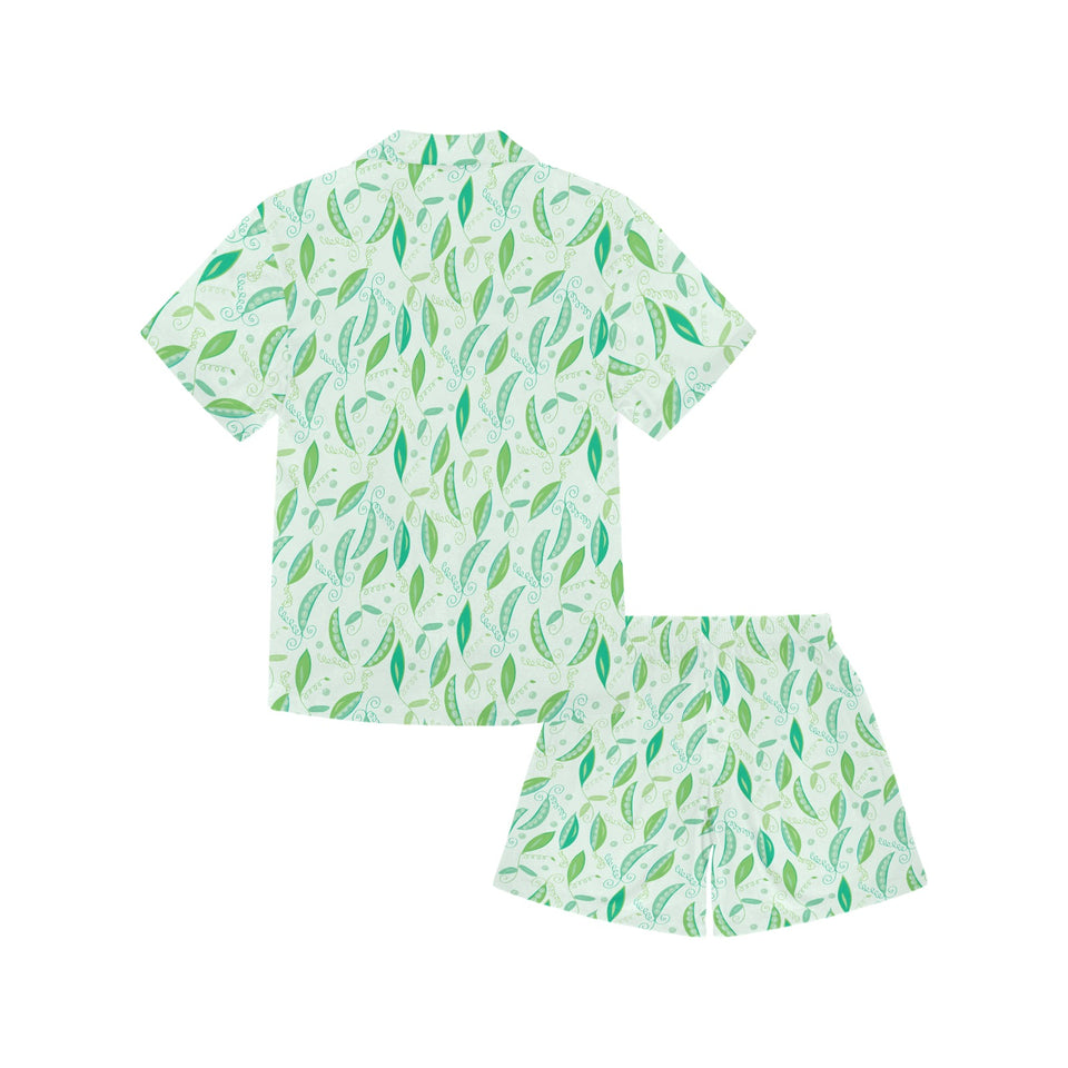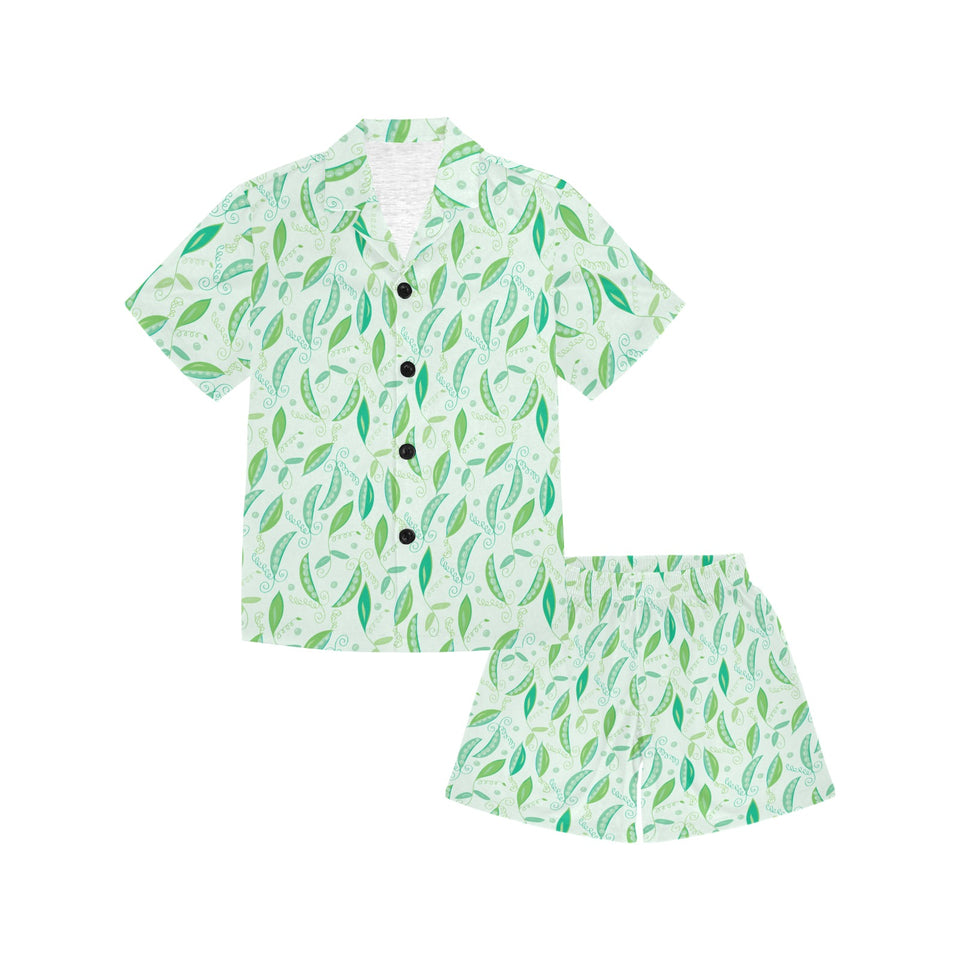Green Peas Pattern Print Design 01 Kids' Boys' Girls' V-Neck Short Pajama Set