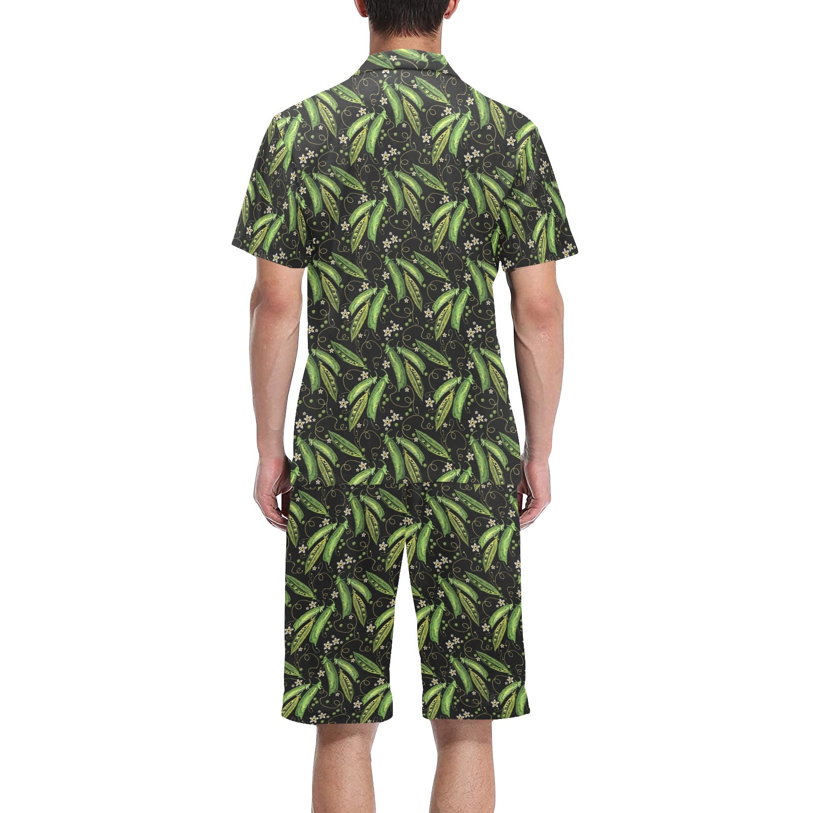 Green Peas Pattern Print Design 02 Men's V-Neck Short Pajama Set
