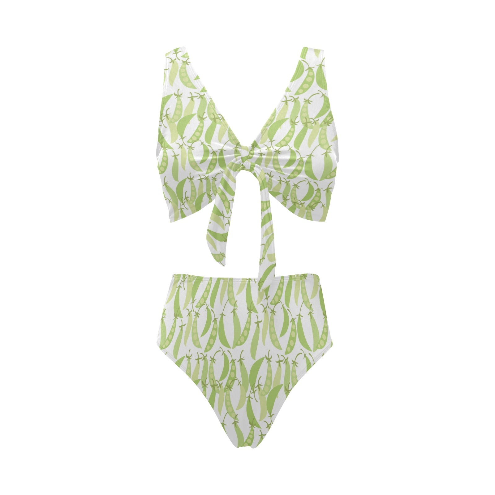 Green Peas Pattern Print Design 03 Chest Bowknot High Waisted Bikini Swimsuit