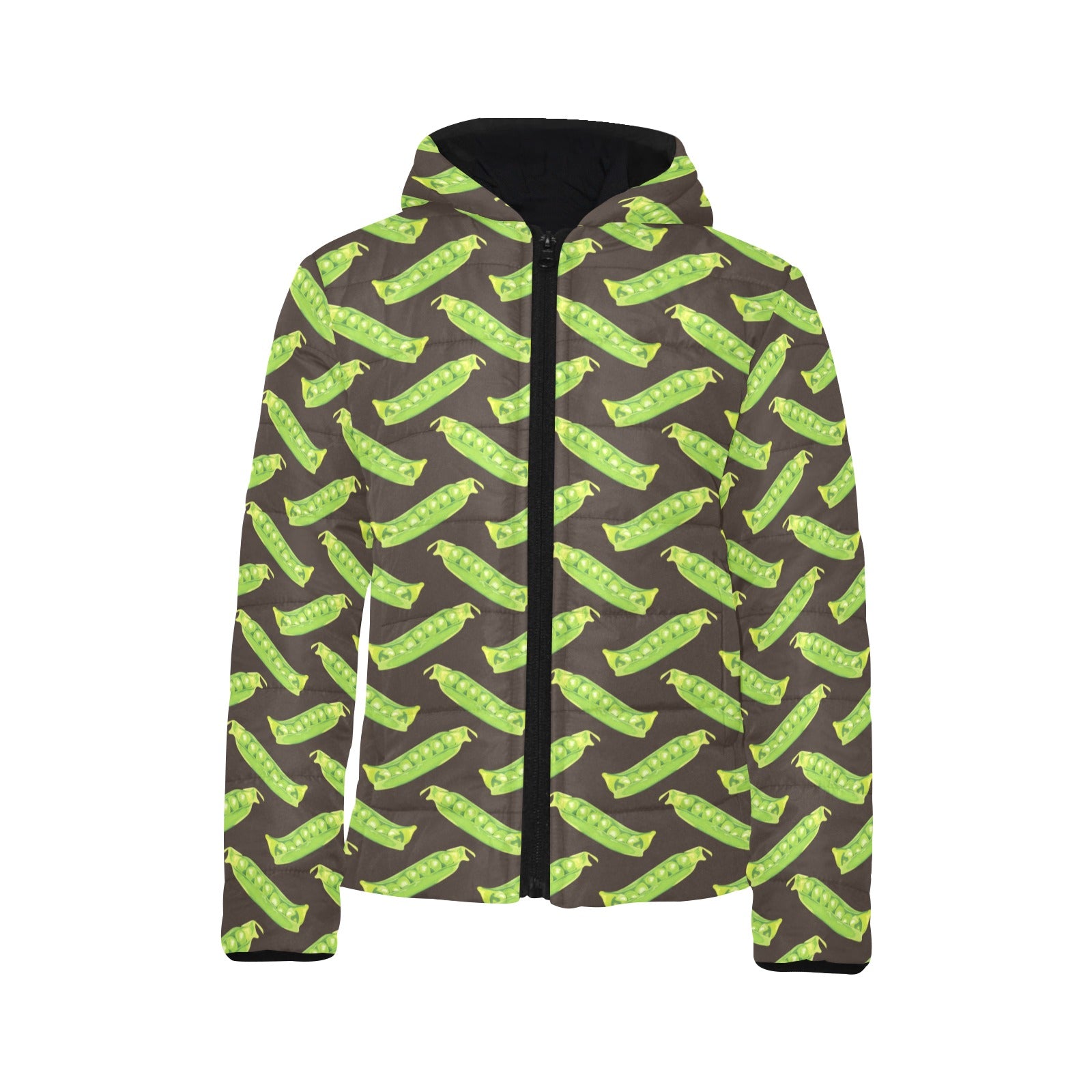 Green Peas Pattern Print Design 05 Kids' Boys' Girls' Padded Hooded Jacket
