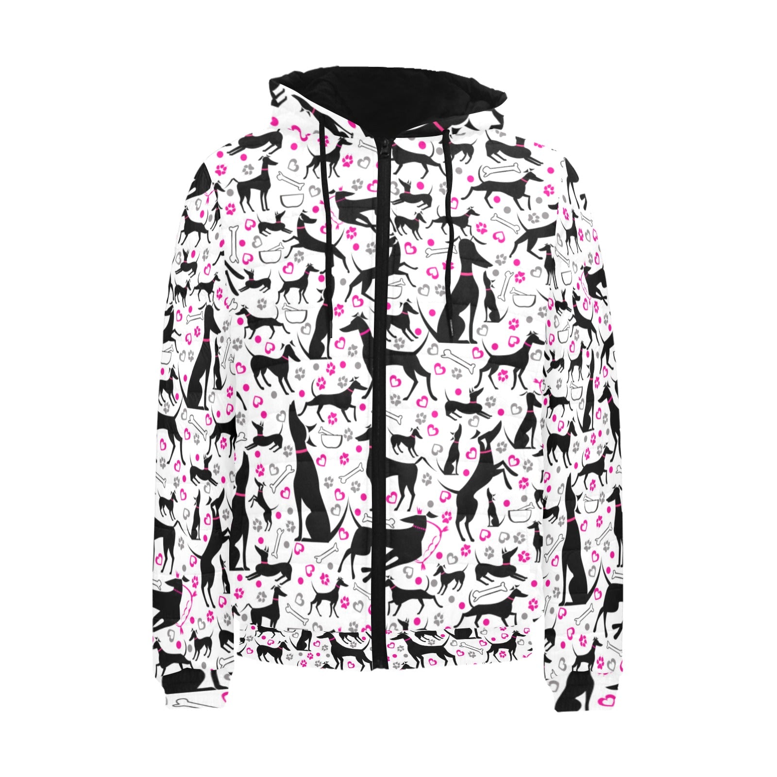 Greyhound Pattern Print Design 02 Men's Padded Hooded Jacket