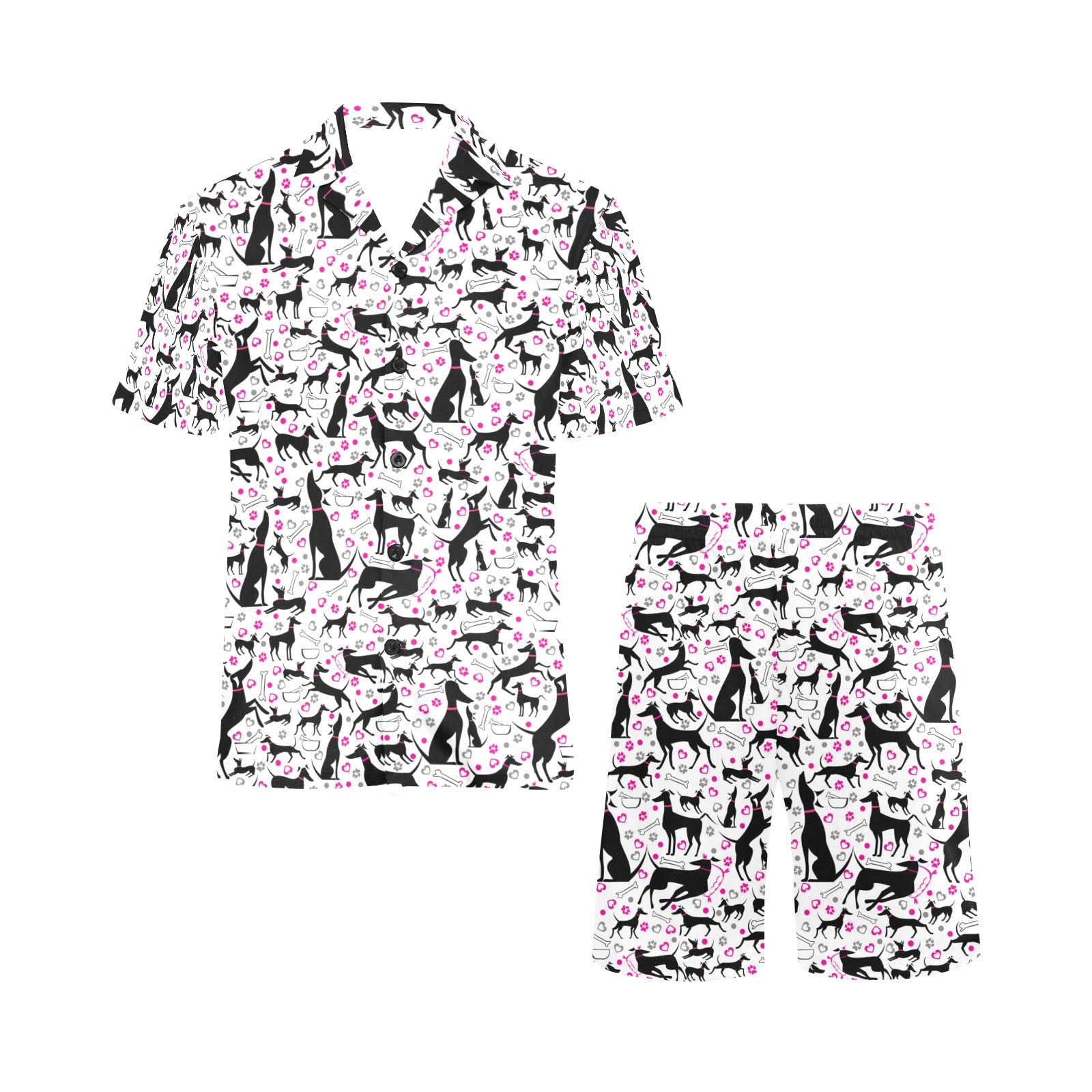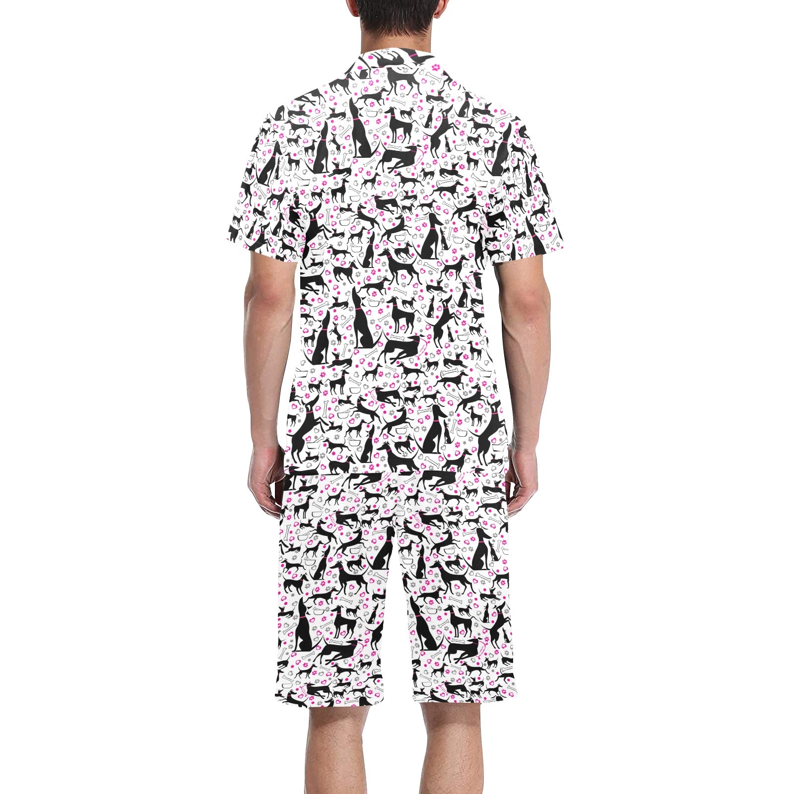 Greyhound Pattern Print Design 02 Men's V-Neck Short Pajama Set