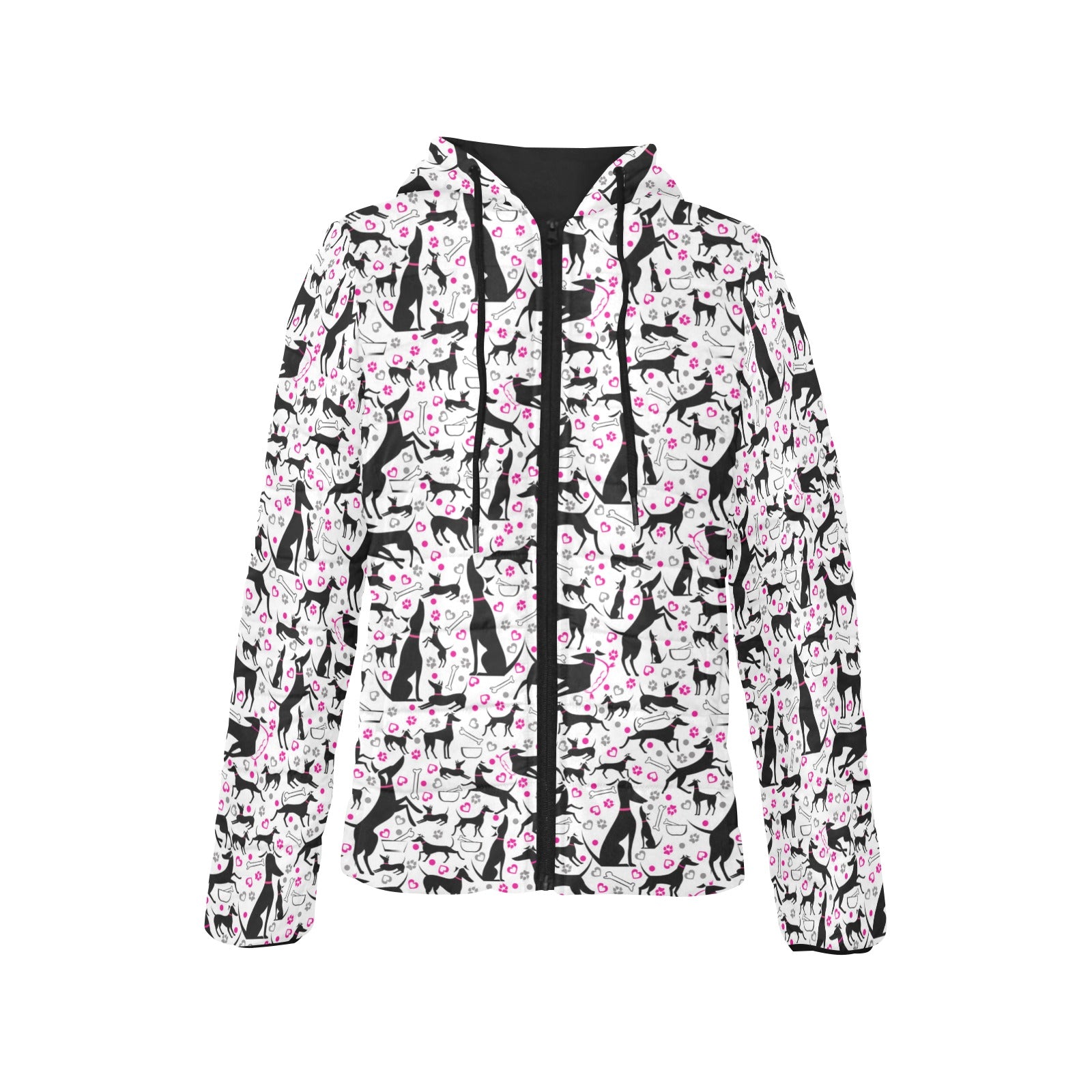 Greyhound Pattern Print Design 02 Women's Padded Hooded Jacket