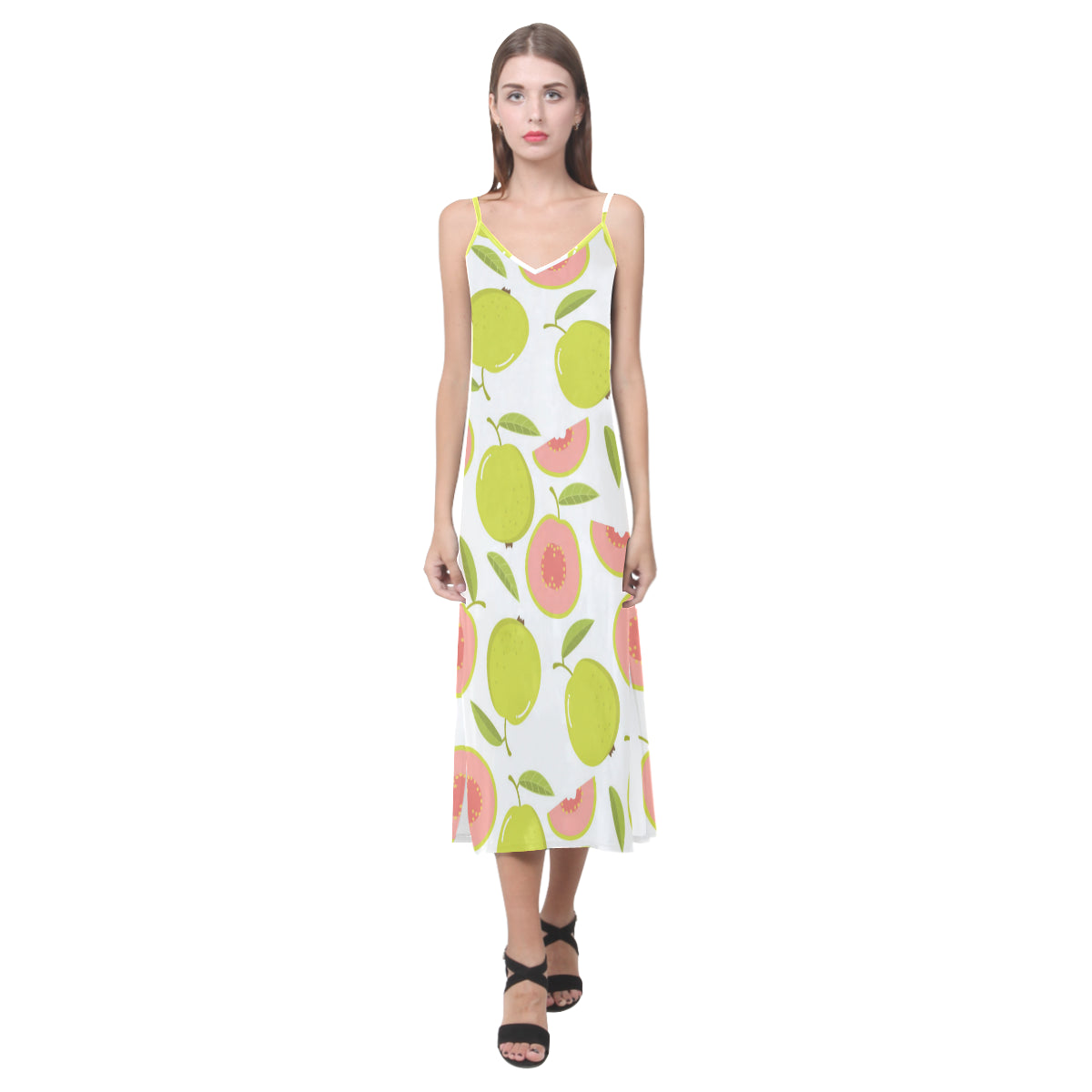 Guava pattern V-Neck Open Fork Long Dress is a uniqued design and limited item. It made to order, hand printed, and sewn with love in our factory.