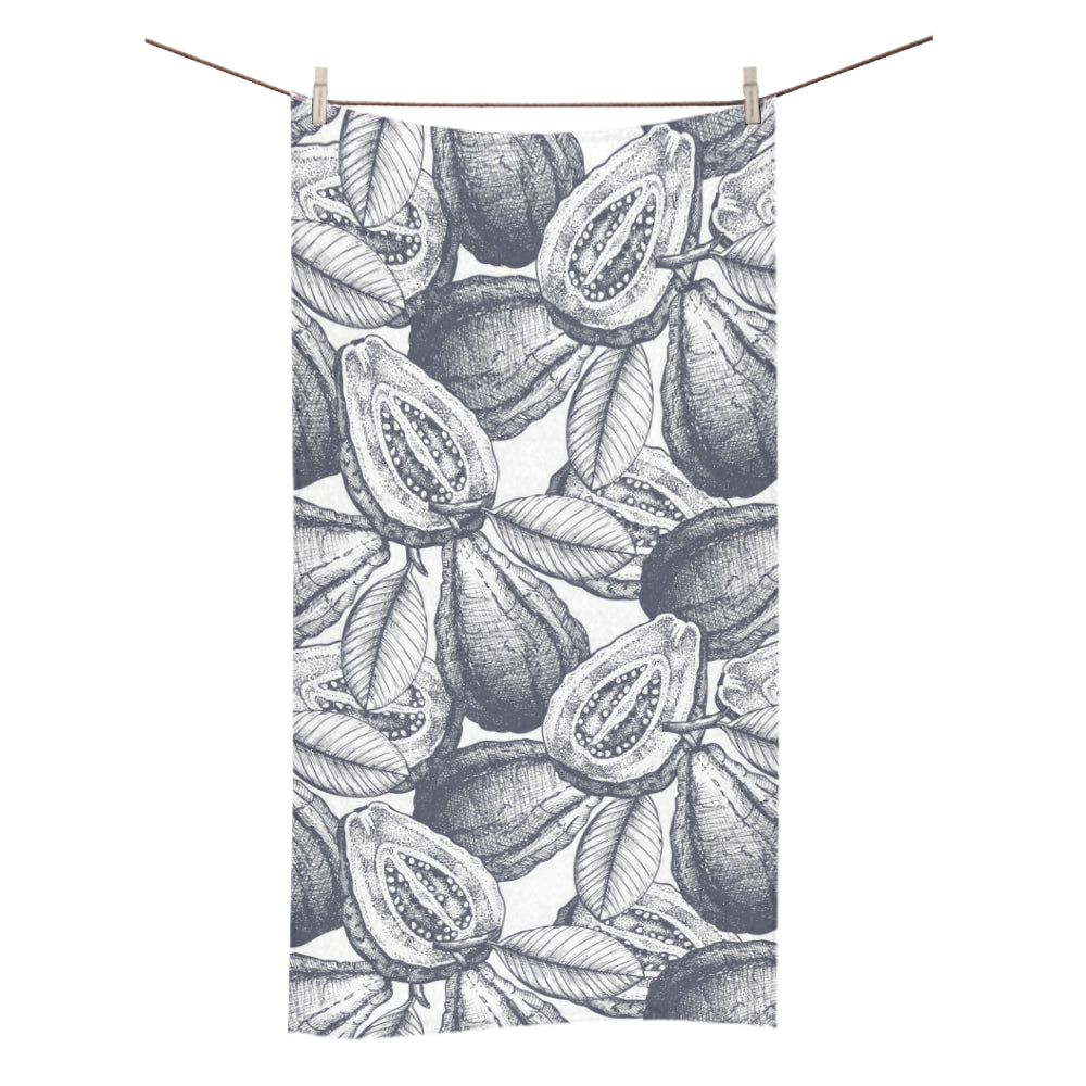 Guava tropical hand drawn pattern Bath Towel 30"x56" is a uniqued design and limited item. It made to order, hand printed, and sewn with love in our factory.