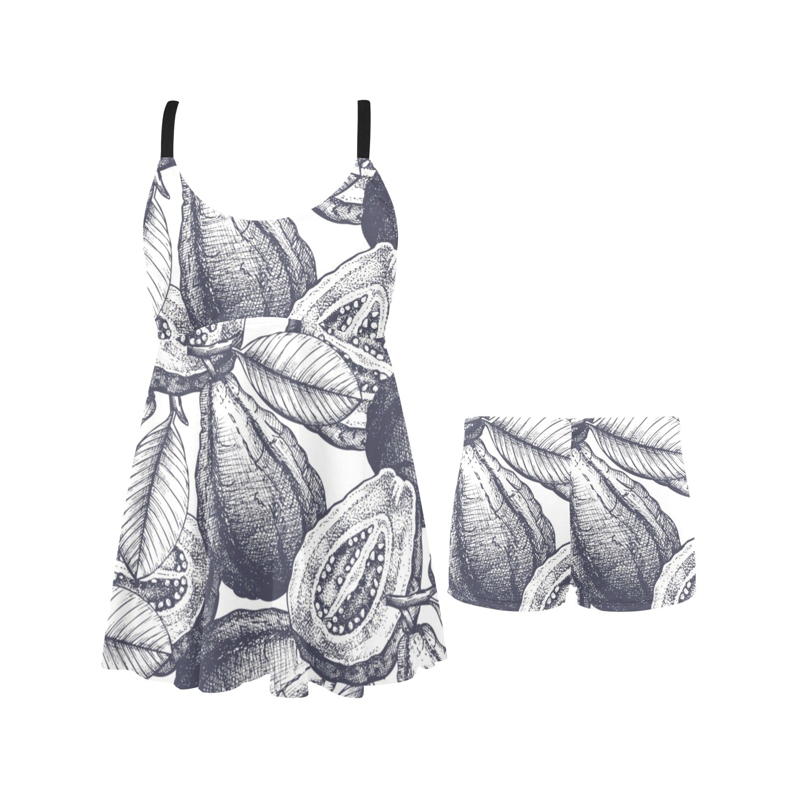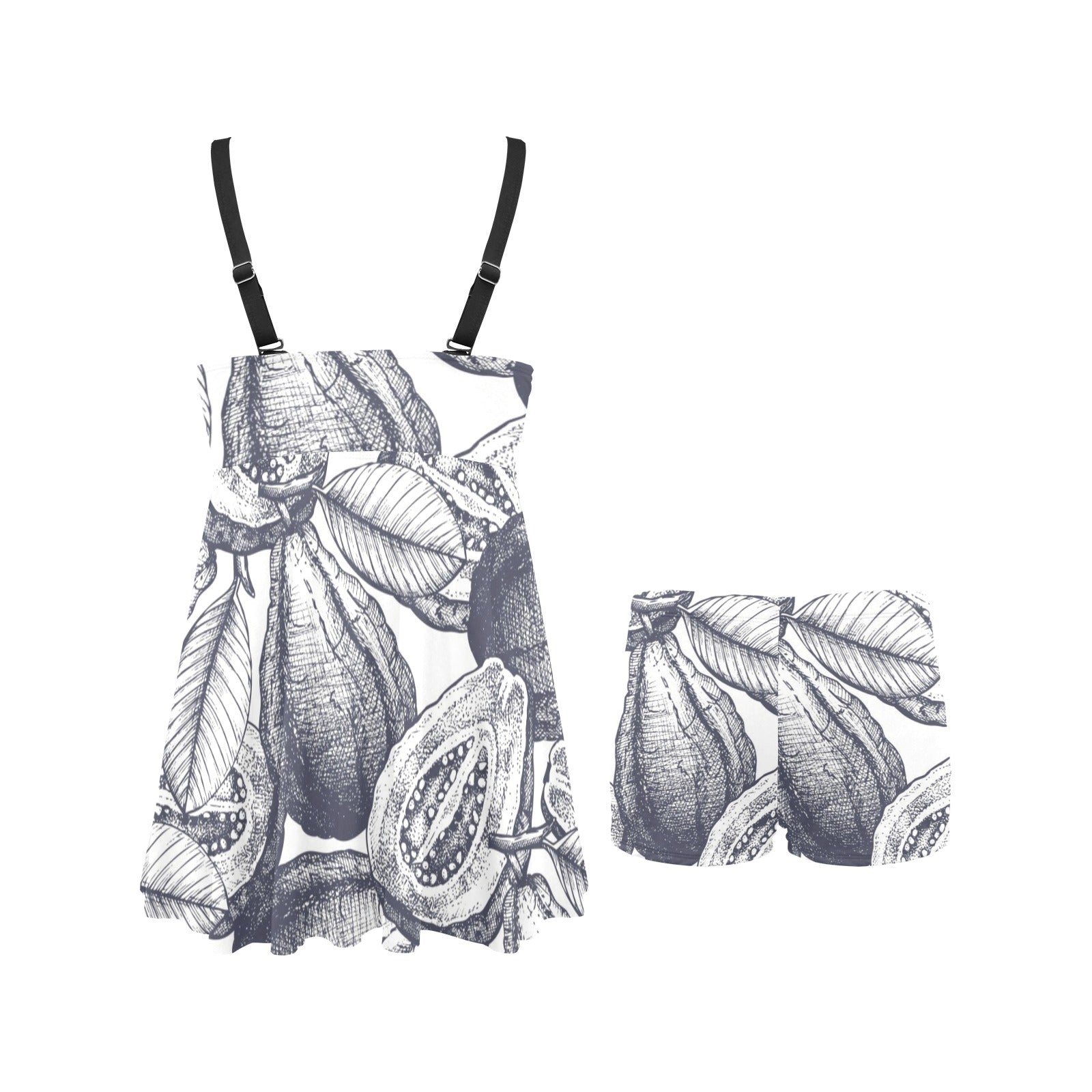 Guava tropical hand drawn pattern Chest Sexy Pleated Two Piece Swim Dress