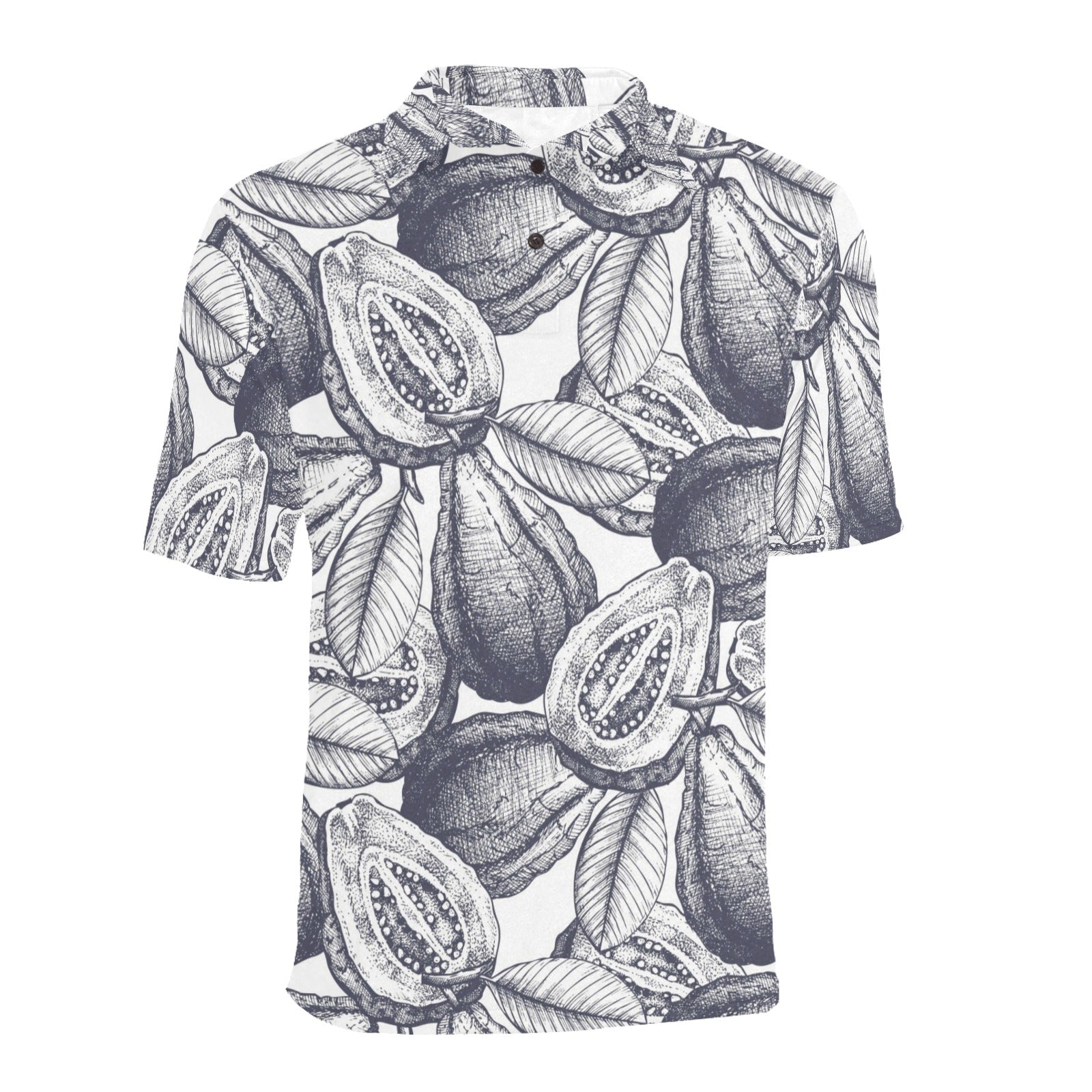 Guava tropical hand drawn pattern Men's All Over Print Polo Shirt