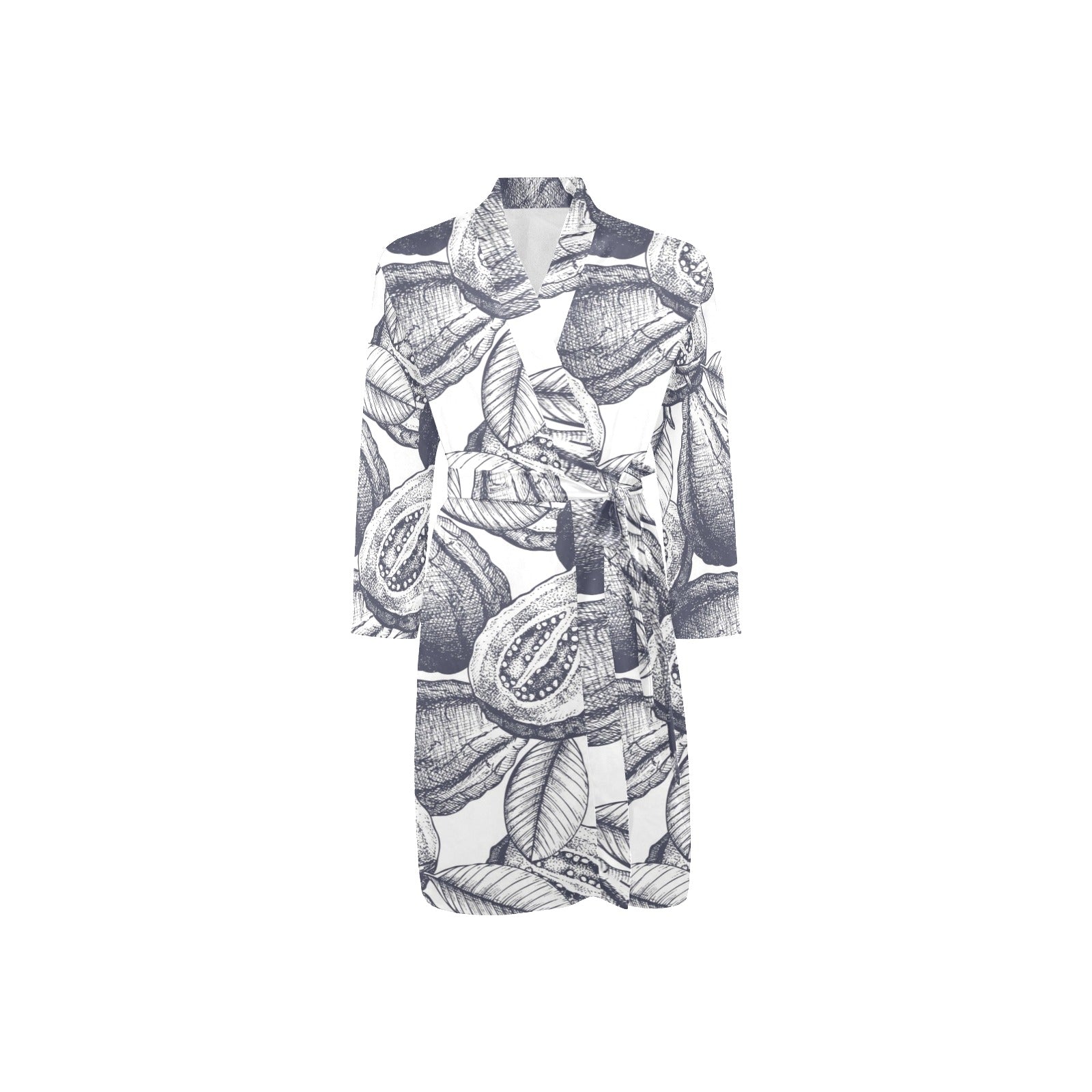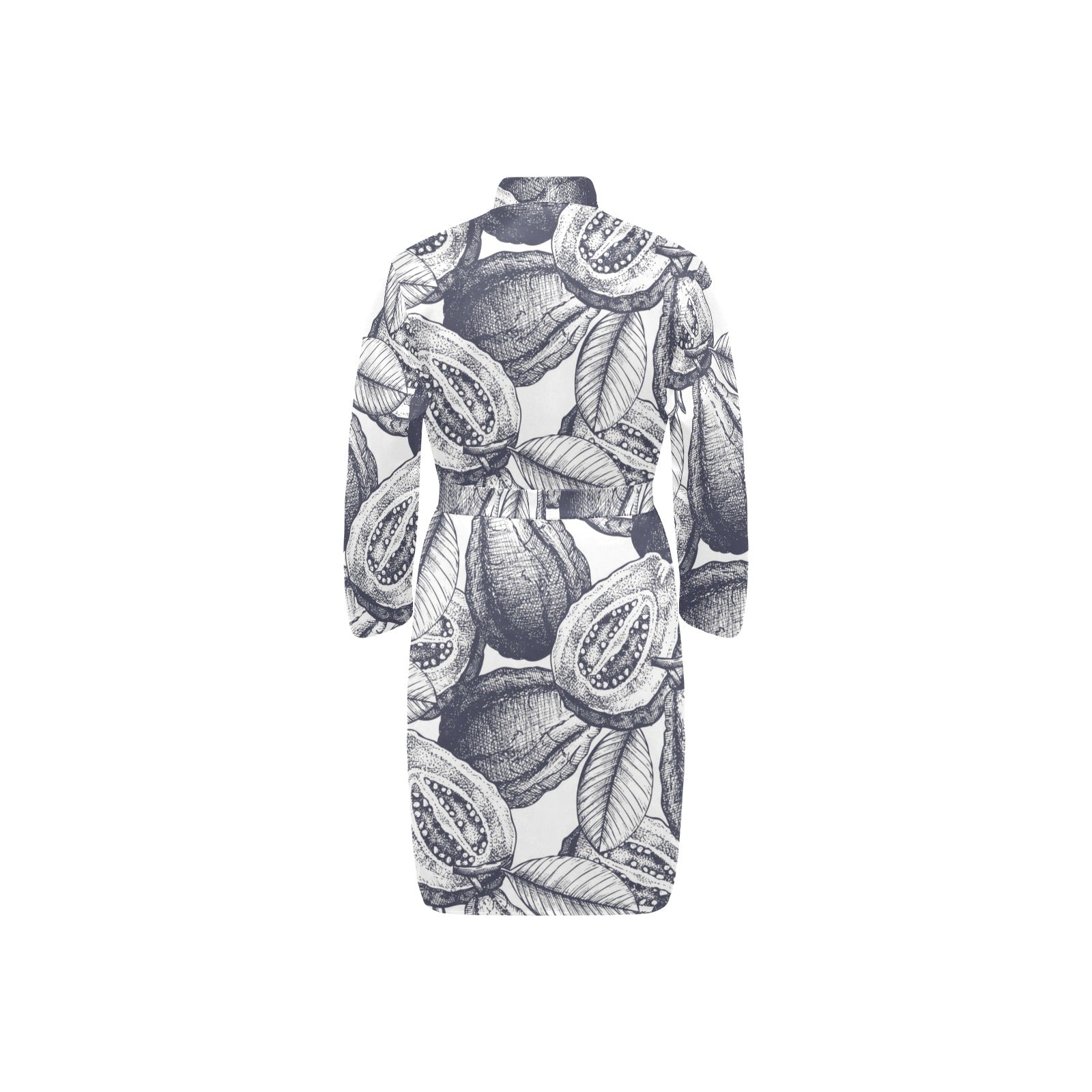 Guava tropical hand drawn pattern Men's Long Sleeve Belted Night Robe
