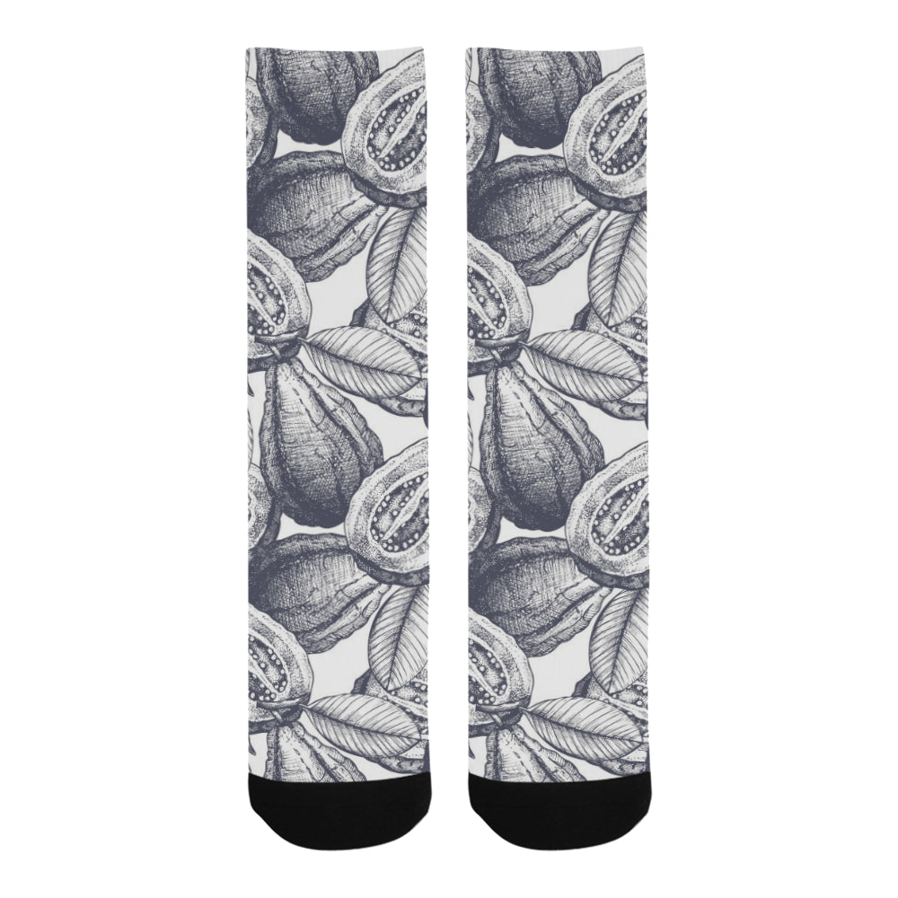 Guava tropical hand drawn pattern Crew Socks are uniqued design and limited item. It made to order, hand printed, and sewn with love in our factory.