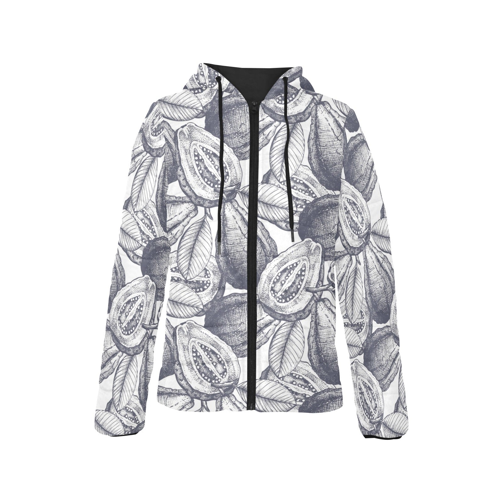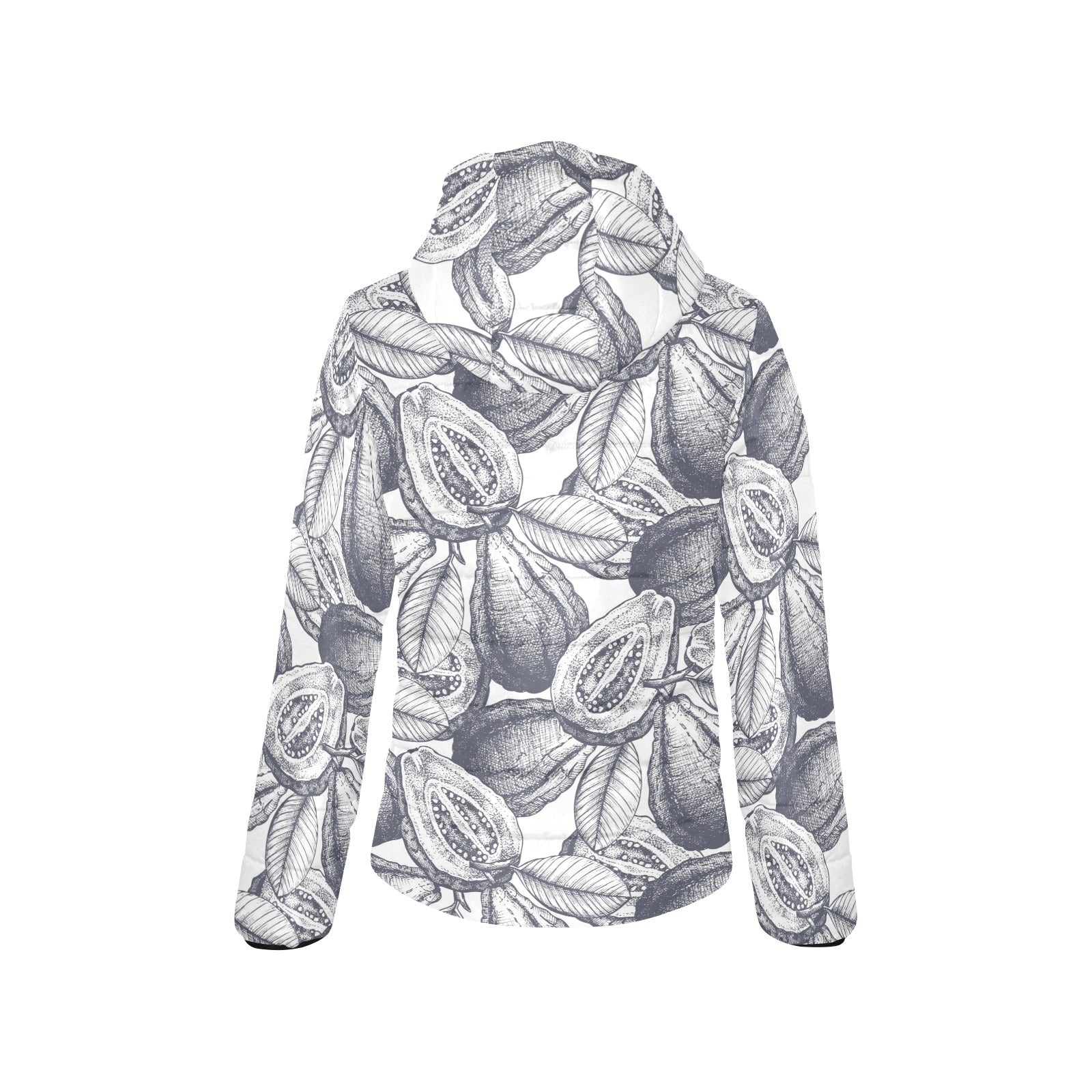 Guava tropical hand drawn pattern Women's Padded Hooded Jacket