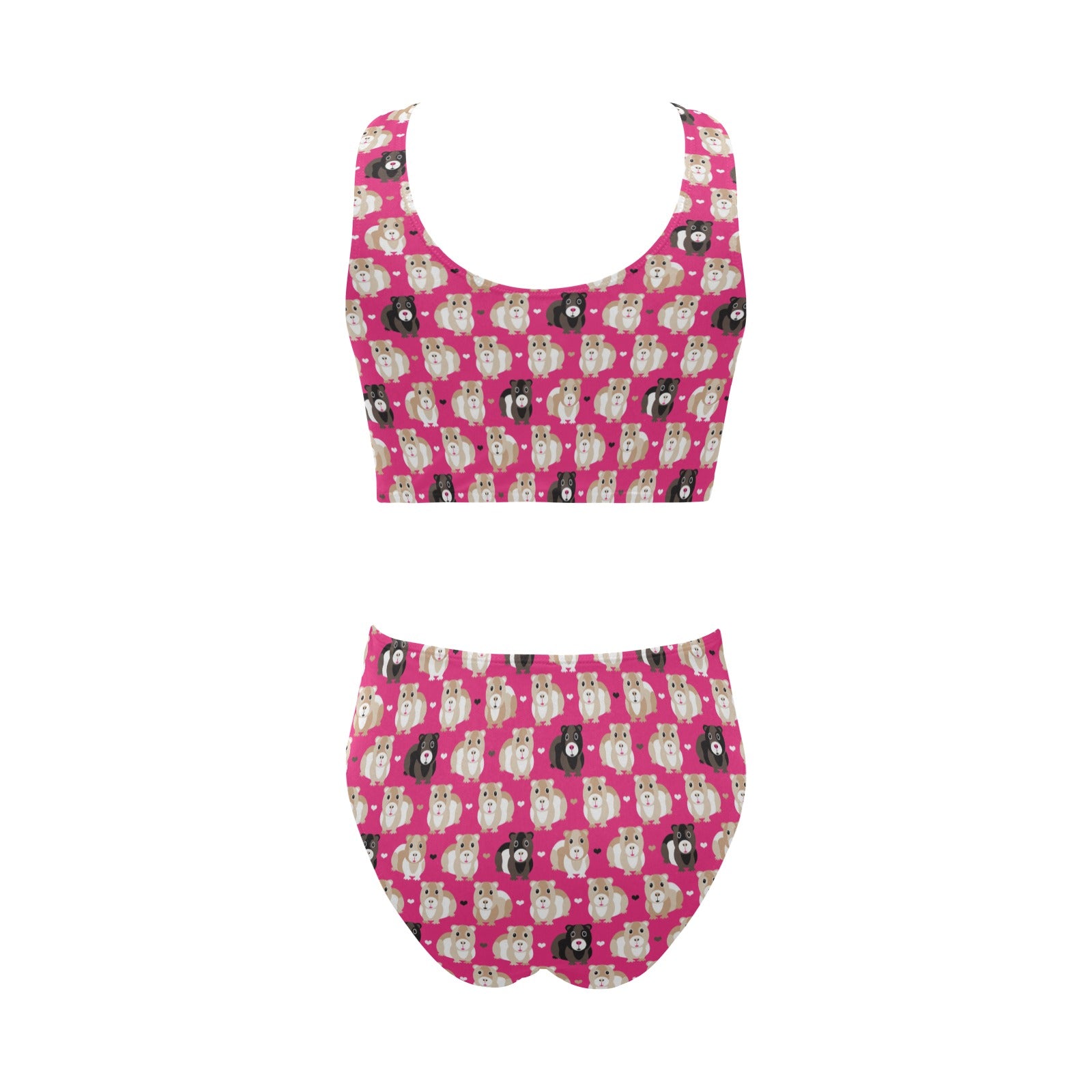 Guinea Pig Pattern Print Design 01 Chest Bowknot High Waisted Bikini Swimsuit