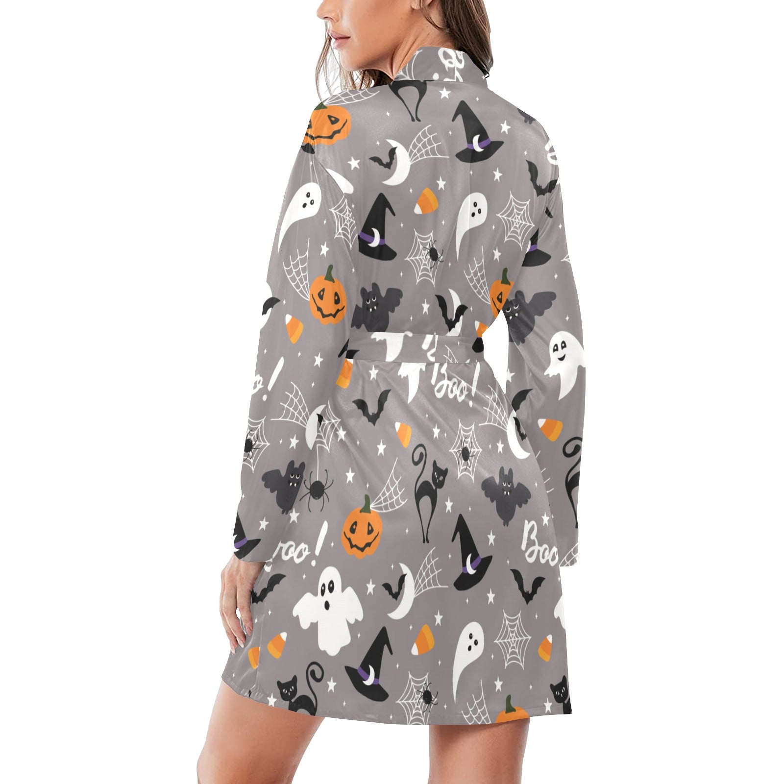 Halloween design pattern Women's Long Sleeve Belted Night Robe