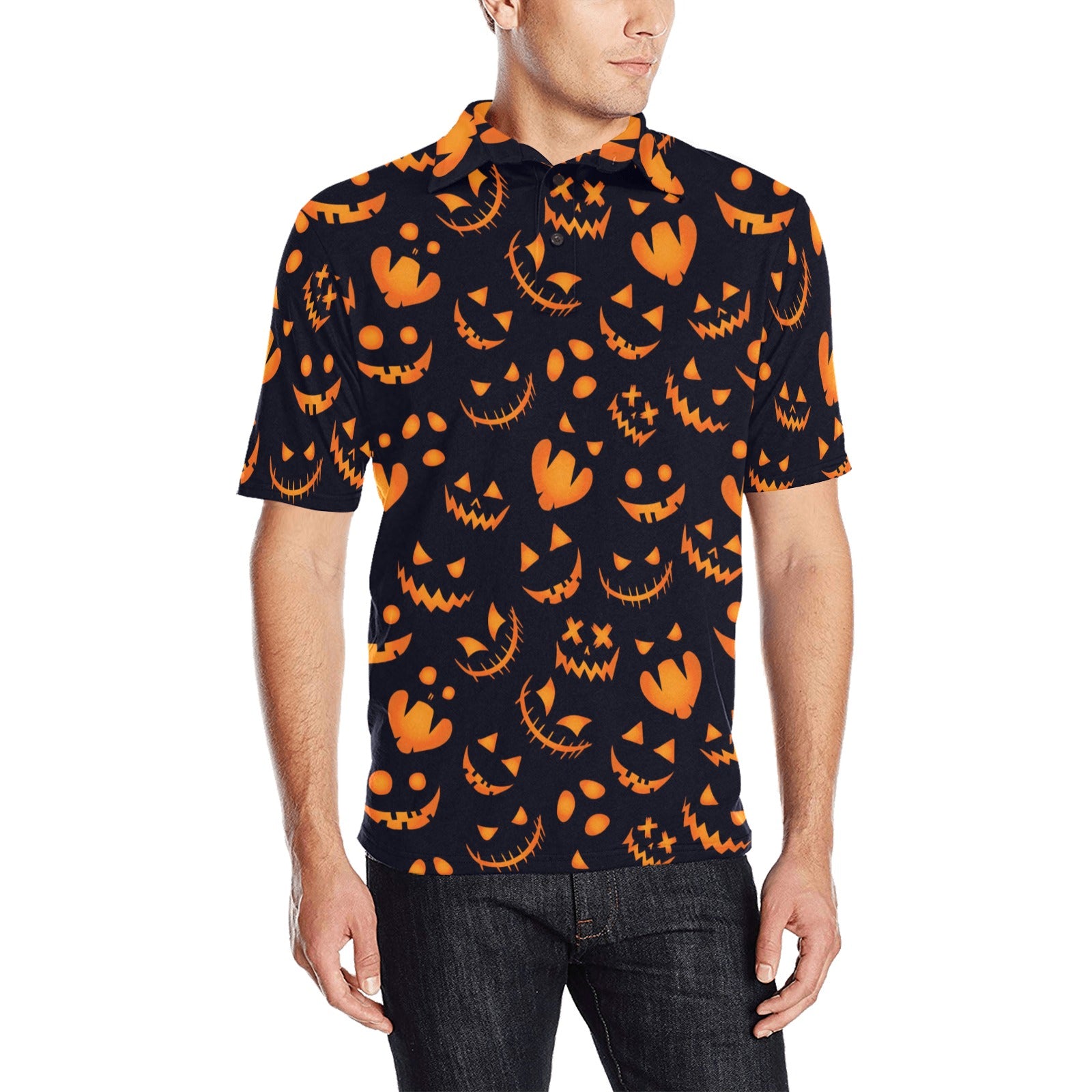 Halloween pattern Pumpkin background Men's All Over Print Polo Shirt