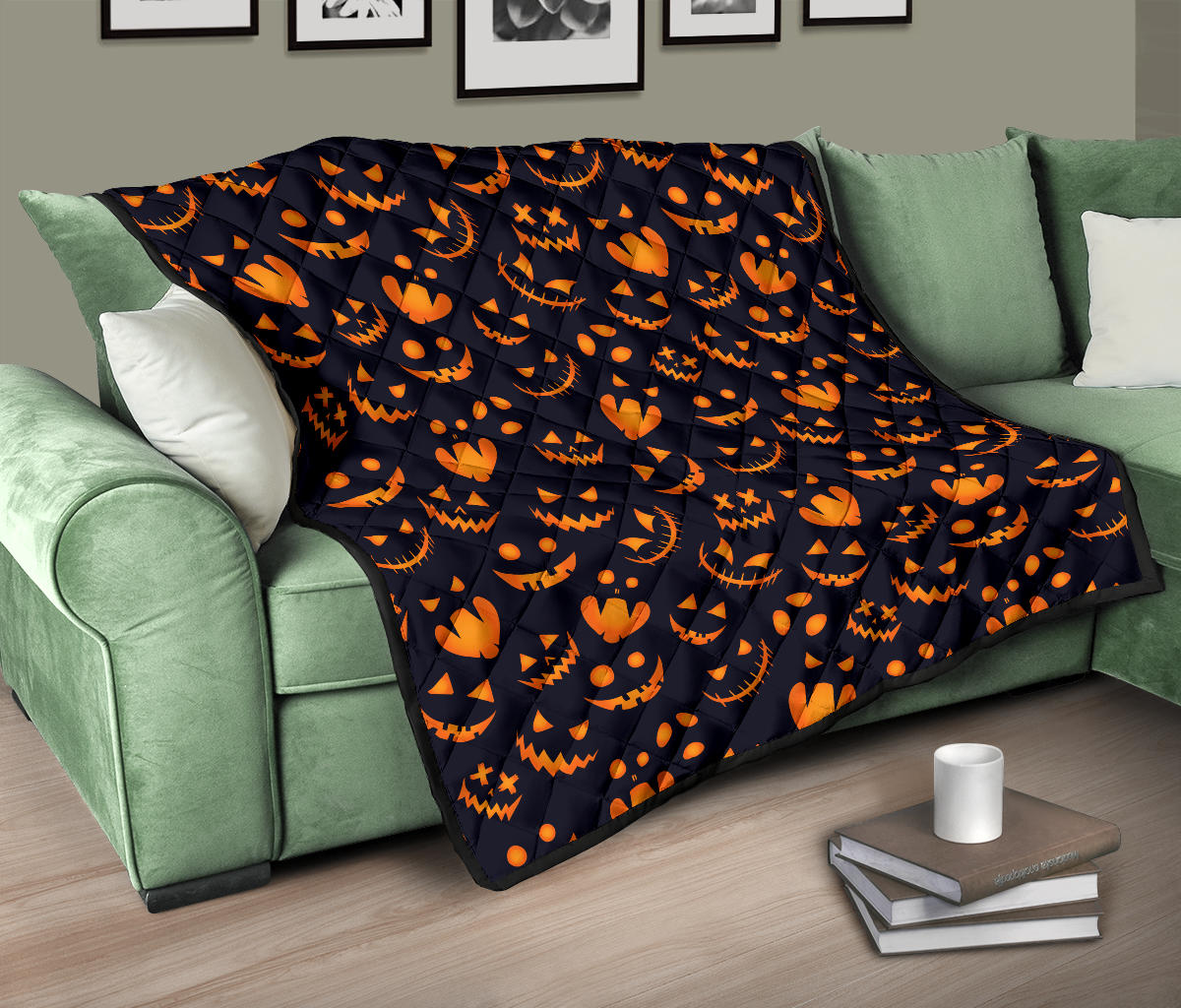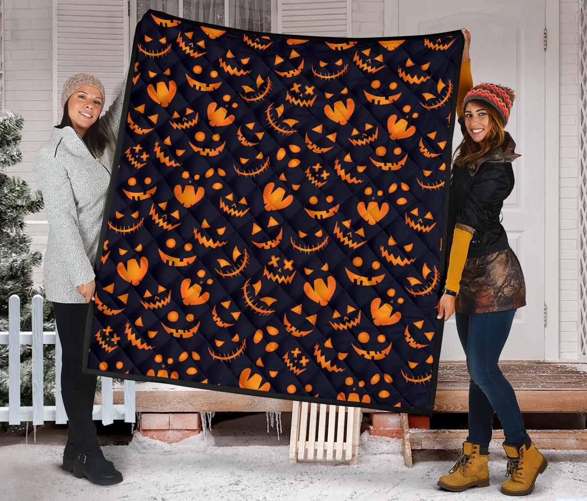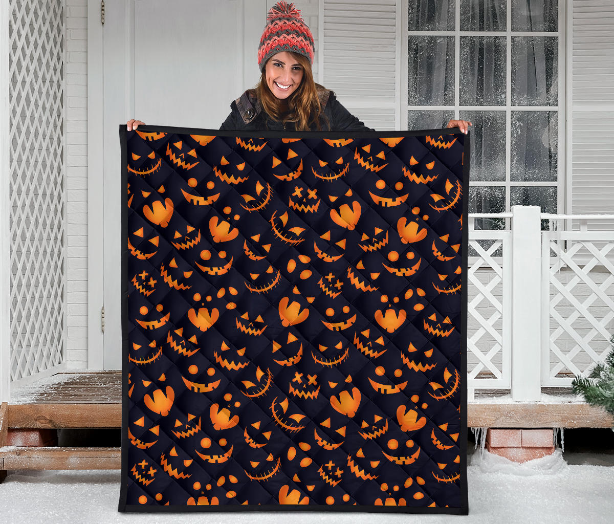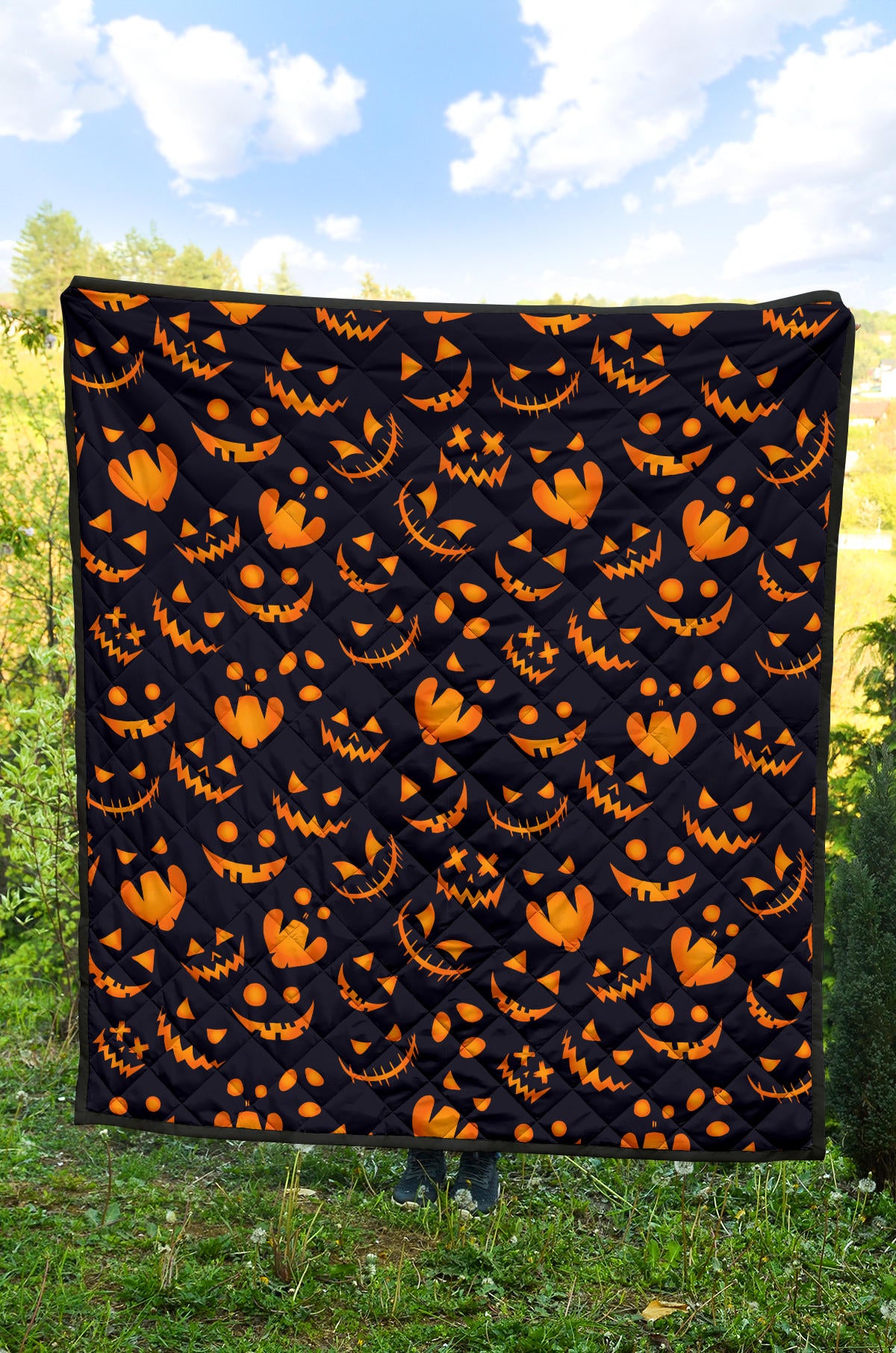 Halloween Pattern Pumpkin Background Premium Quilt is a uniqued design and limited item. It made to order, hand printed, and sewn with love in our factory.