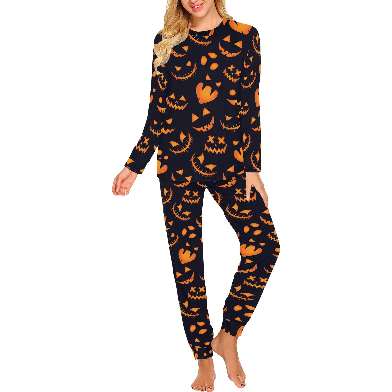 Halloween pattern Pumpkin background Women's All Over Print Pajama Set