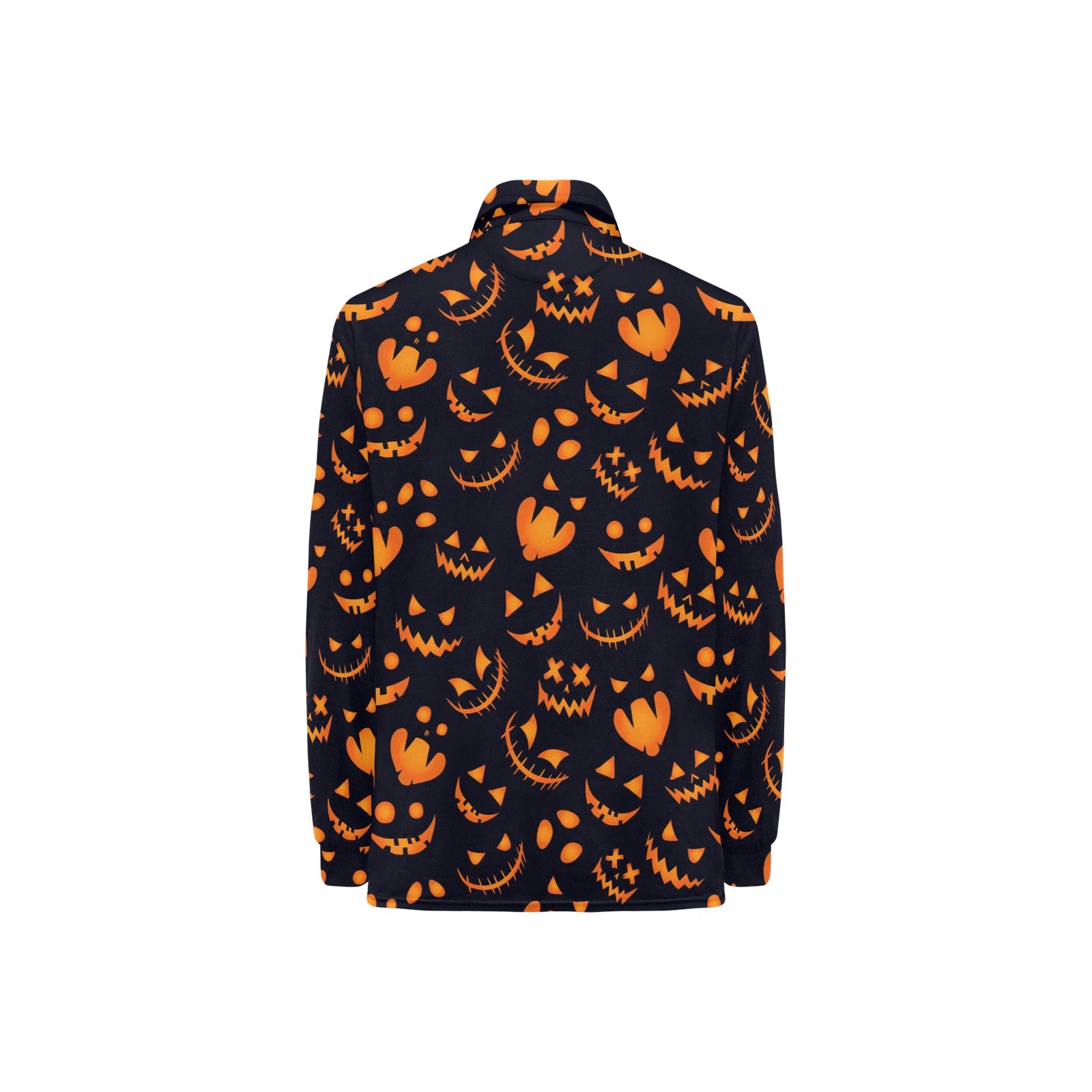 Halloween pattern Pumpkin background Women's Long Sleeve Polo Shirt