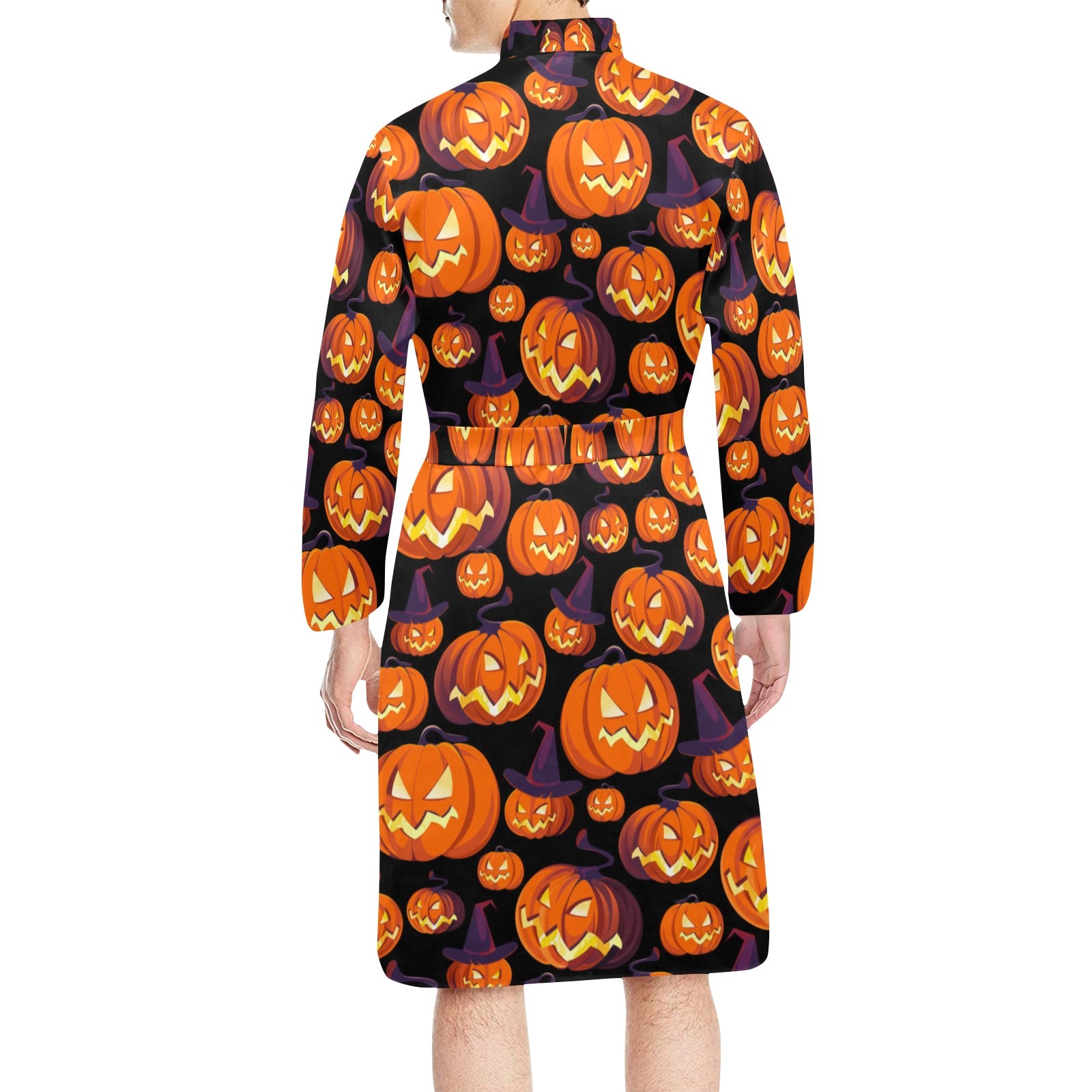Halloween Pumpkin pattern Men's Long Sleeve Belted Night Robe