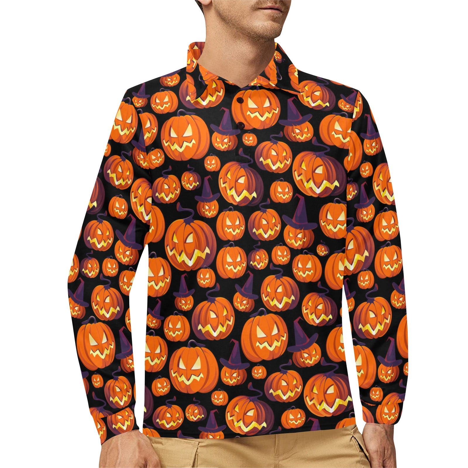 Halloween Pumpkin pattern Men's Long Sleeve Polo Shirt