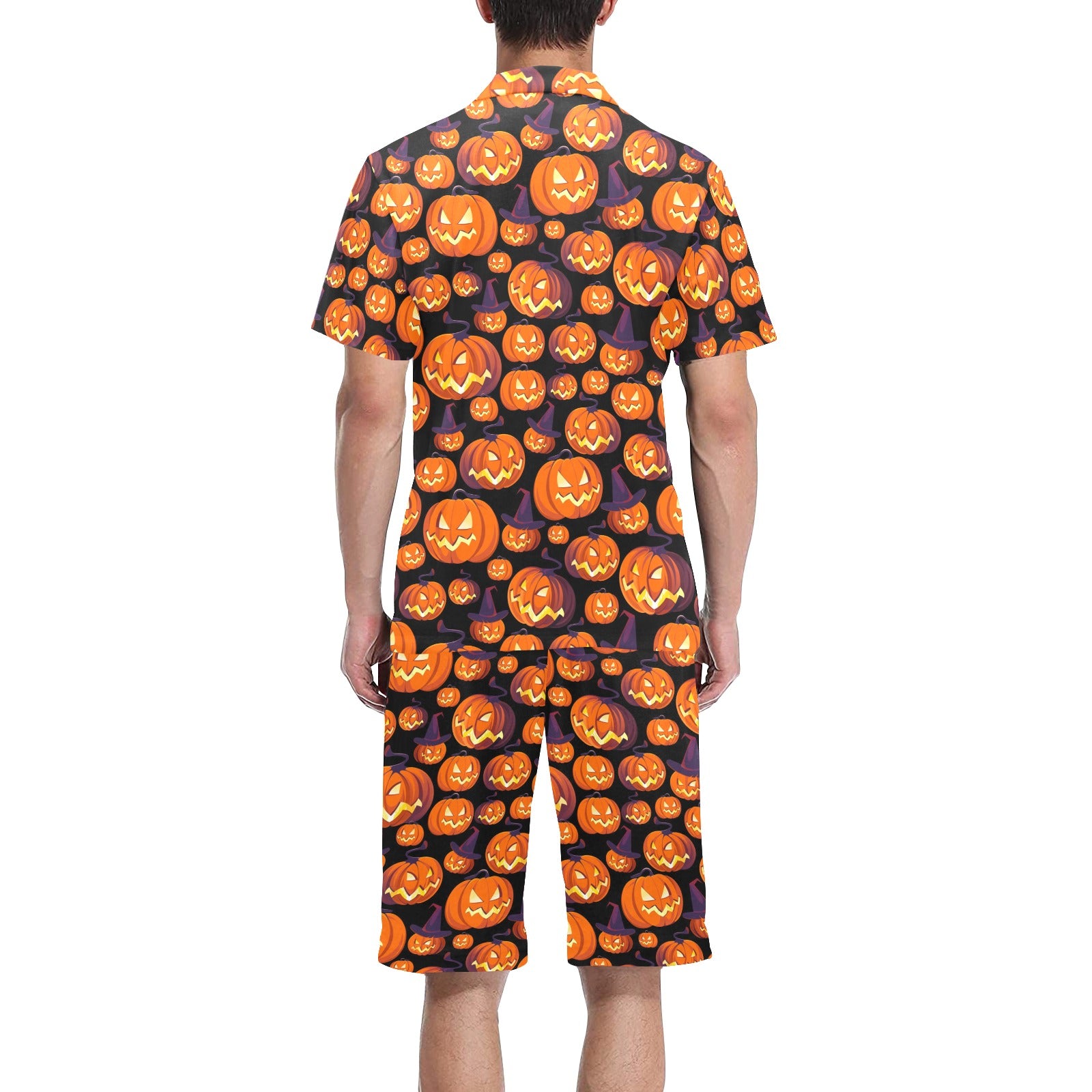 Halloween Pumpkin pattern Men's V-Neck Short Pajama Set
