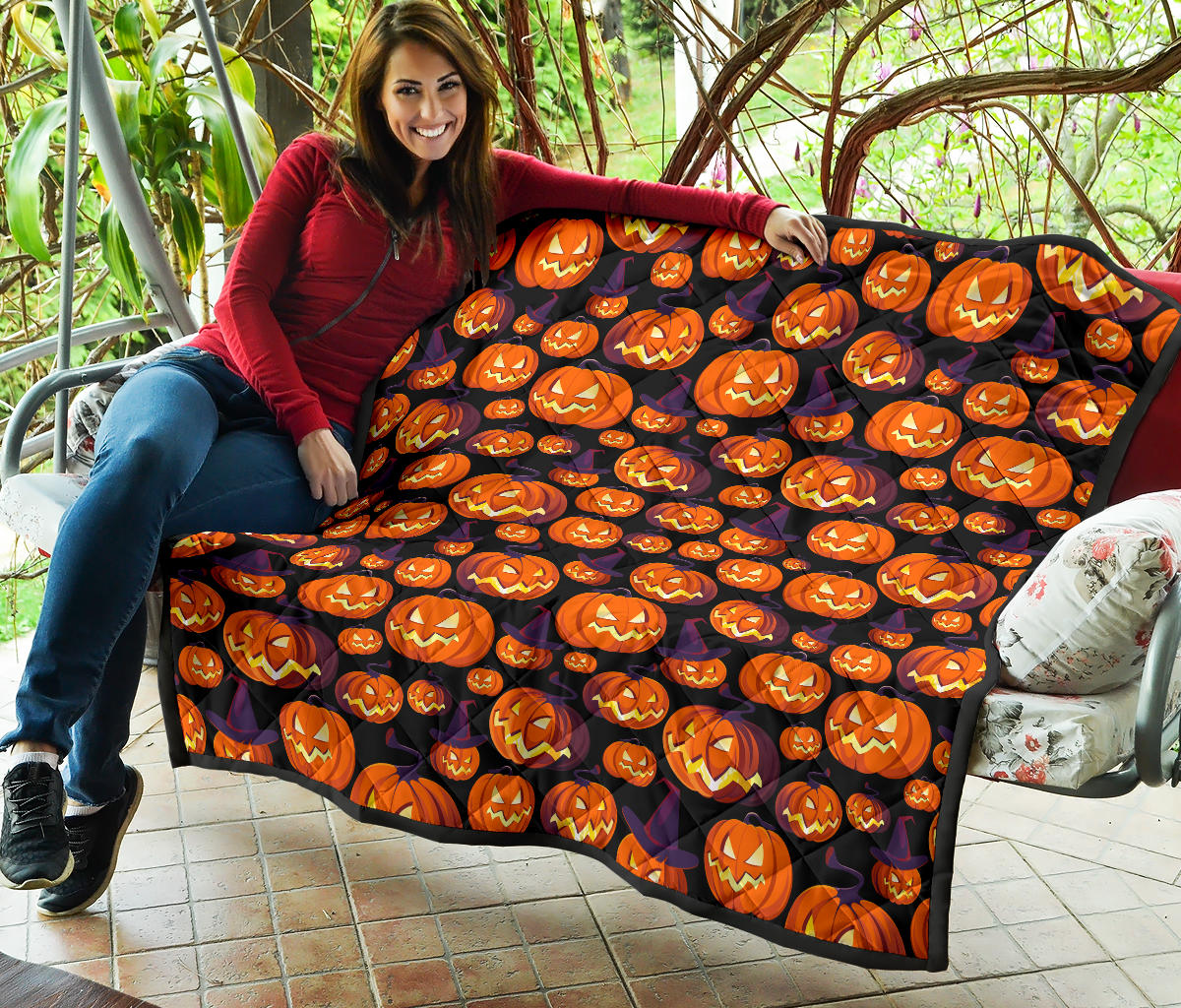 Halloween Pumpkin Pattern Premium Quilt is a uniqued design and limited item. It made to order, hand printed, and sewn with love in our factory.