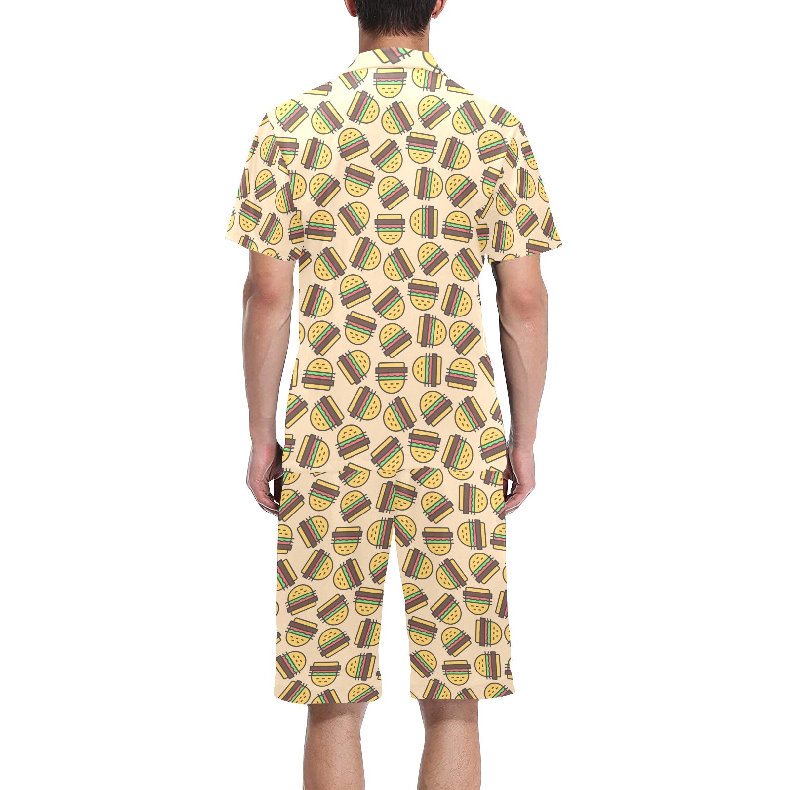 Hamburger Pattern Print Design 01 Men's V-Neck Short Pajama Set