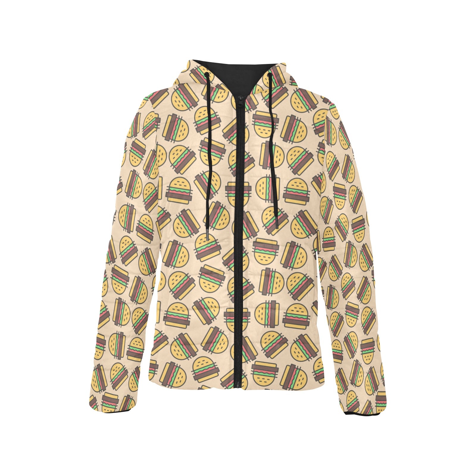 Hamburger Pattern Print Design 01 Women's Padded Hooded Jacket