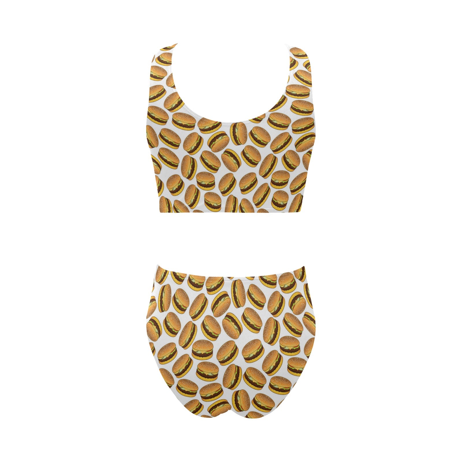 Hamburger Pattern Print Design 03 Chest Bowknot High Waisted Bikini Swimsuit
