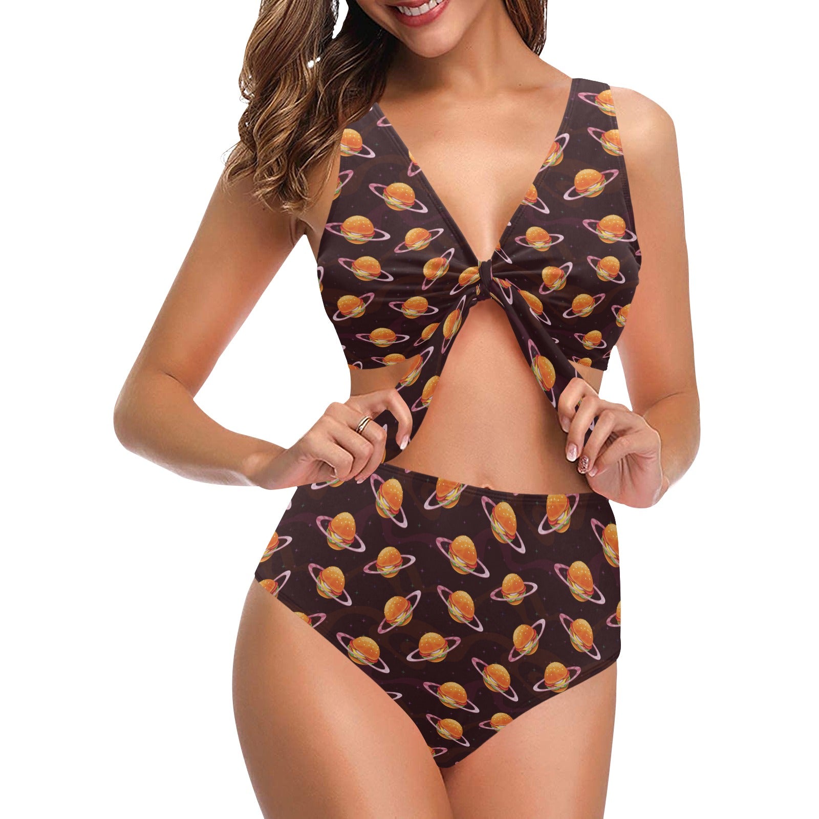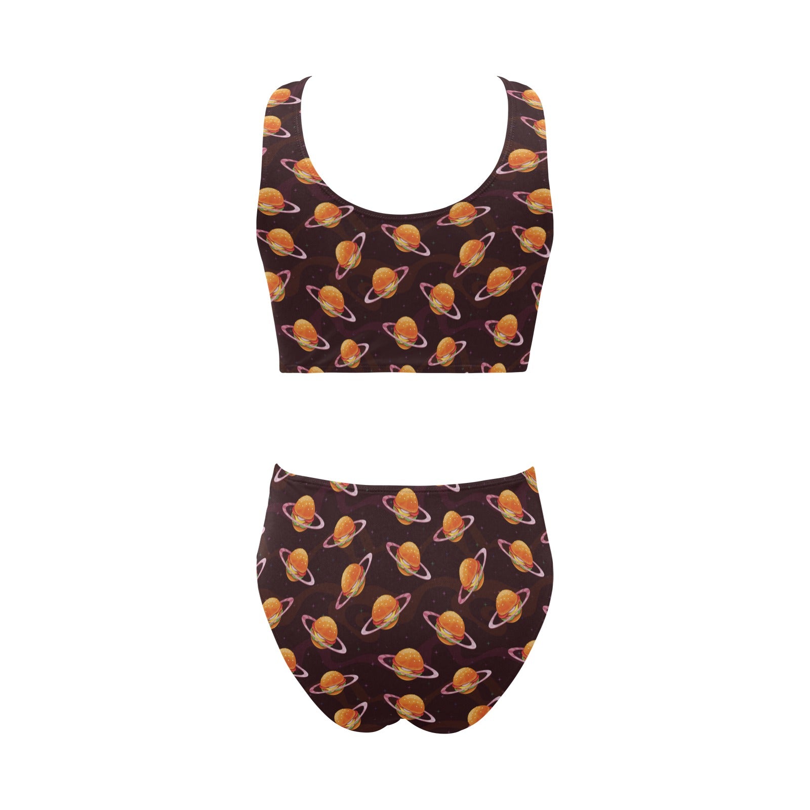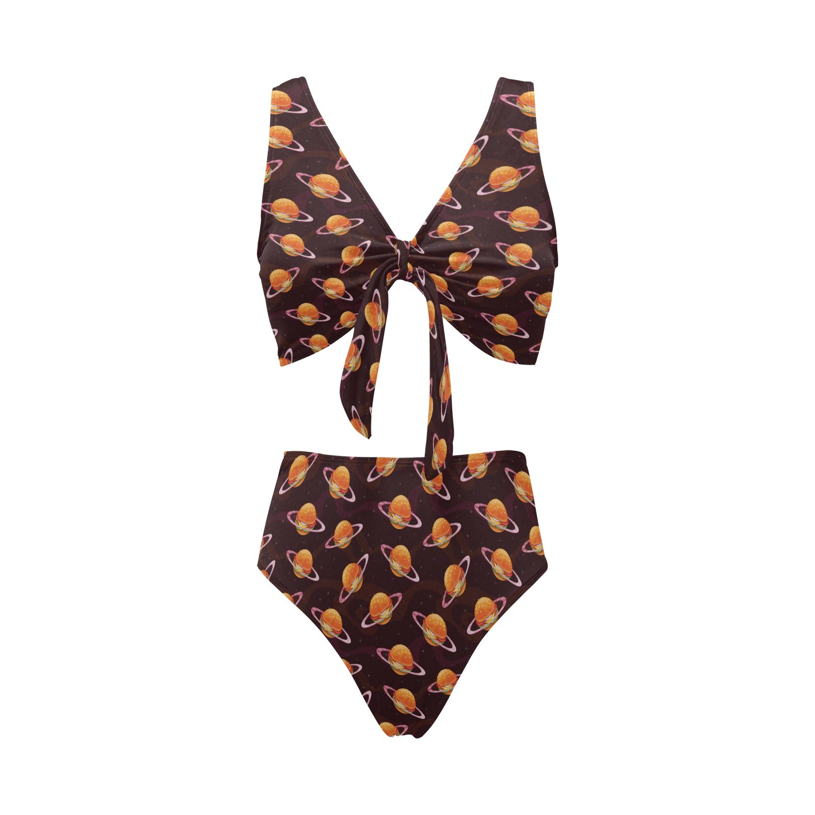 Hamburger Pattern Print Design 05 Chest Bowknot High Waisted Bikini Swimsuit