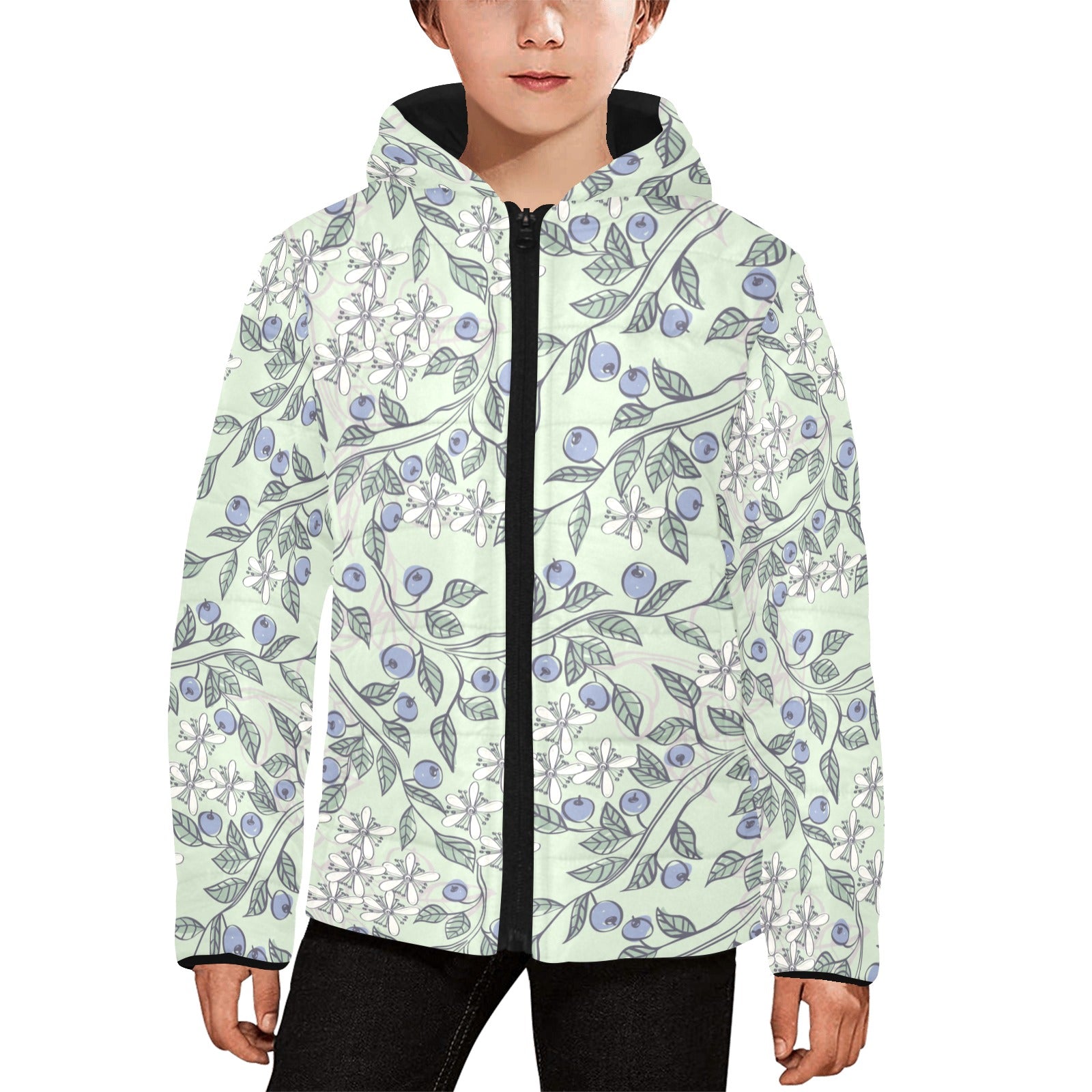 hand drawn blueberry pattern Kids' Boys' Girls' Padded Hooded Jacket